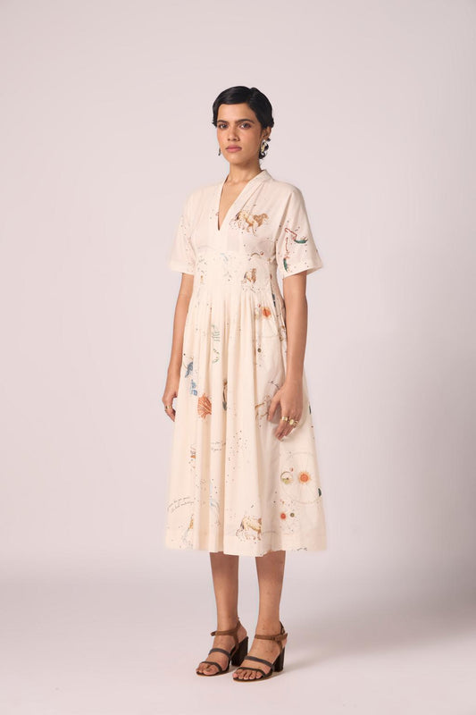 Abstract Print Cotton Elastic Wasit Belt Dress