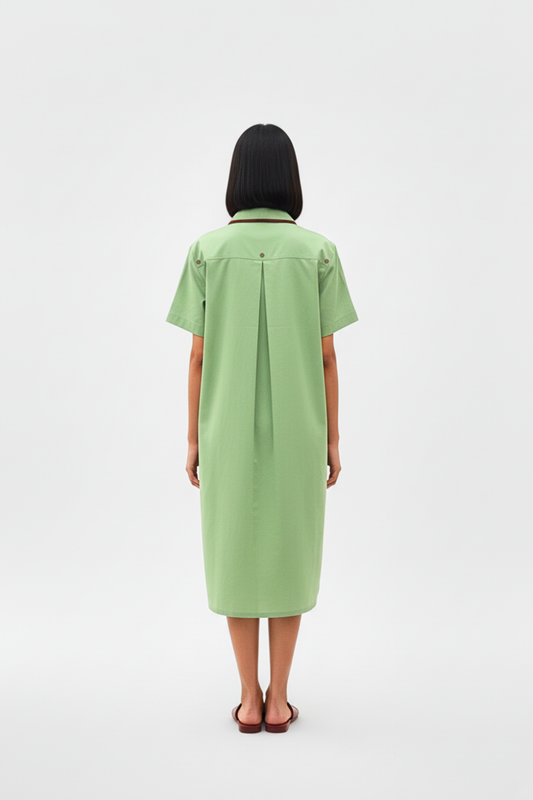 Asparagus Green-Tuscan Red Collared Stripe Dress