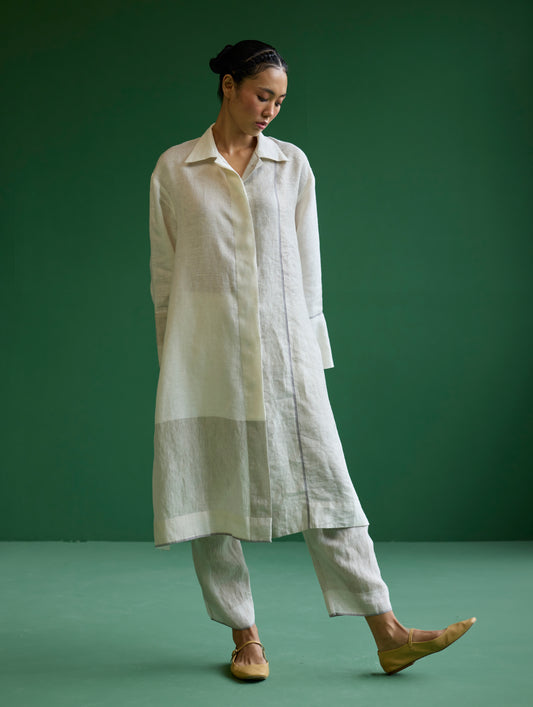 Ziza Metallic Linen Shirt Kurta - Ivory