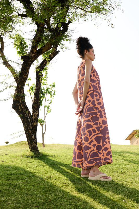 Brown and Charcoal Striped Mati Sphara Jumpsuit