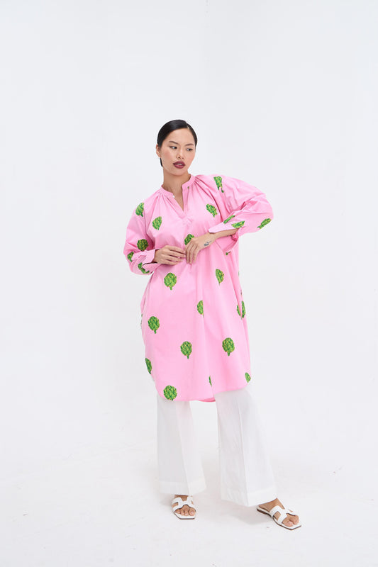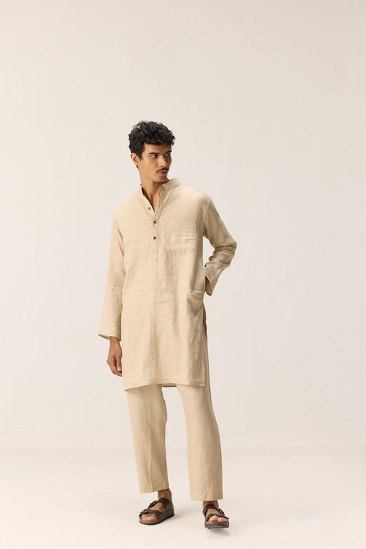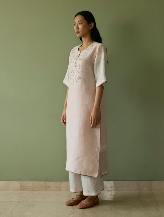 Vira Hand-Emboidered Linen Kurta Set - Blush