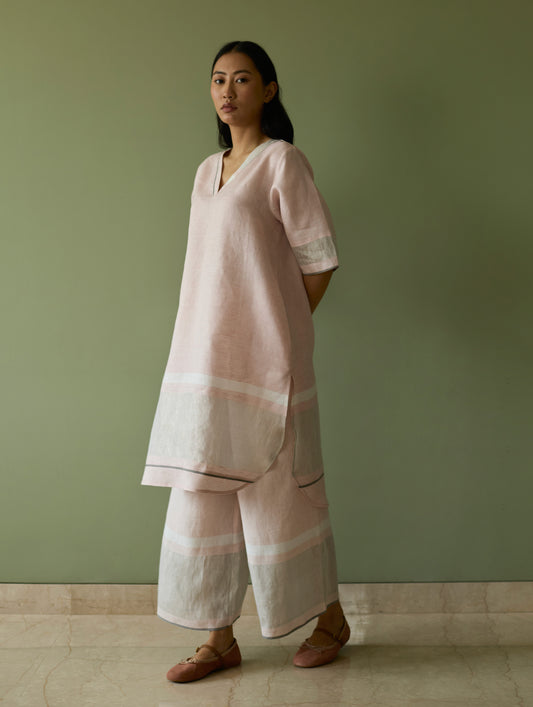 Yara Sleeveless Border Linen Kurta Set - Blush