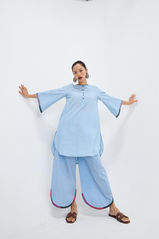 Vira Hand-Emboidered Linen Kurta Set - Meadow