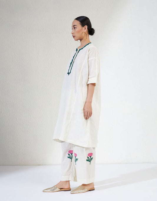 PINK MUSTARD POPPIES SHORT KURTA SET