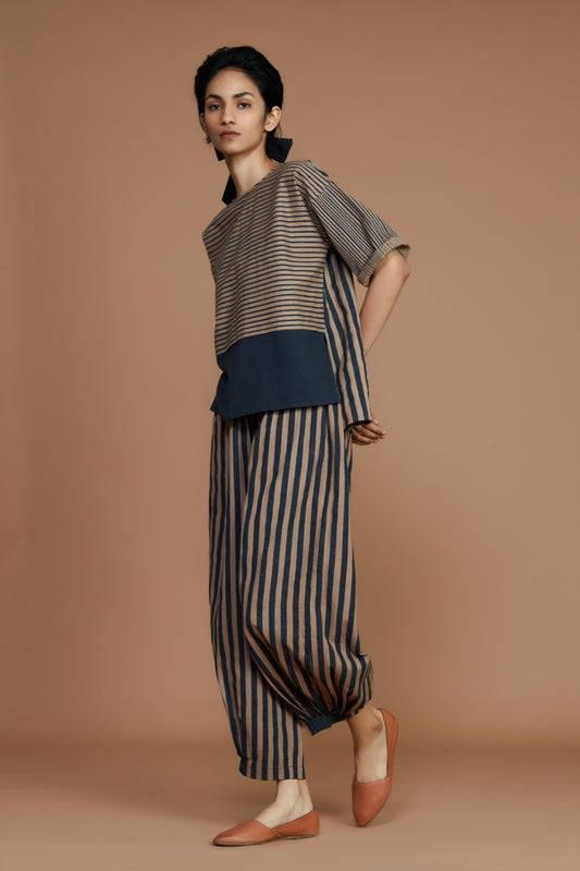 Brown With Charcoal Striped Kaftan Co-Ord Set