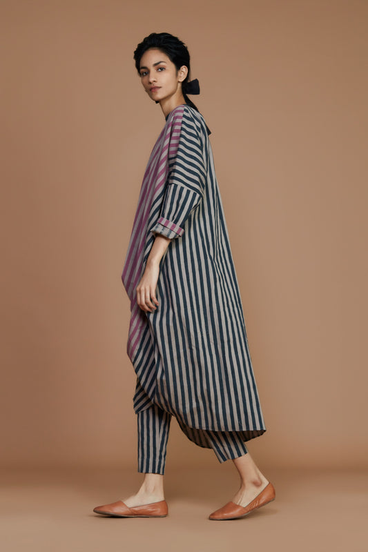Grey with Charcoal Striped Kaftan Co-Ord Set