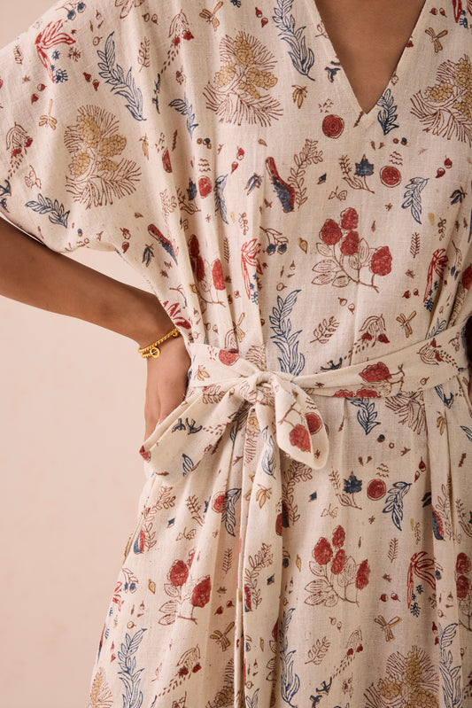 Forest Bloom Handwoven Kala Cotton Maxi Dress