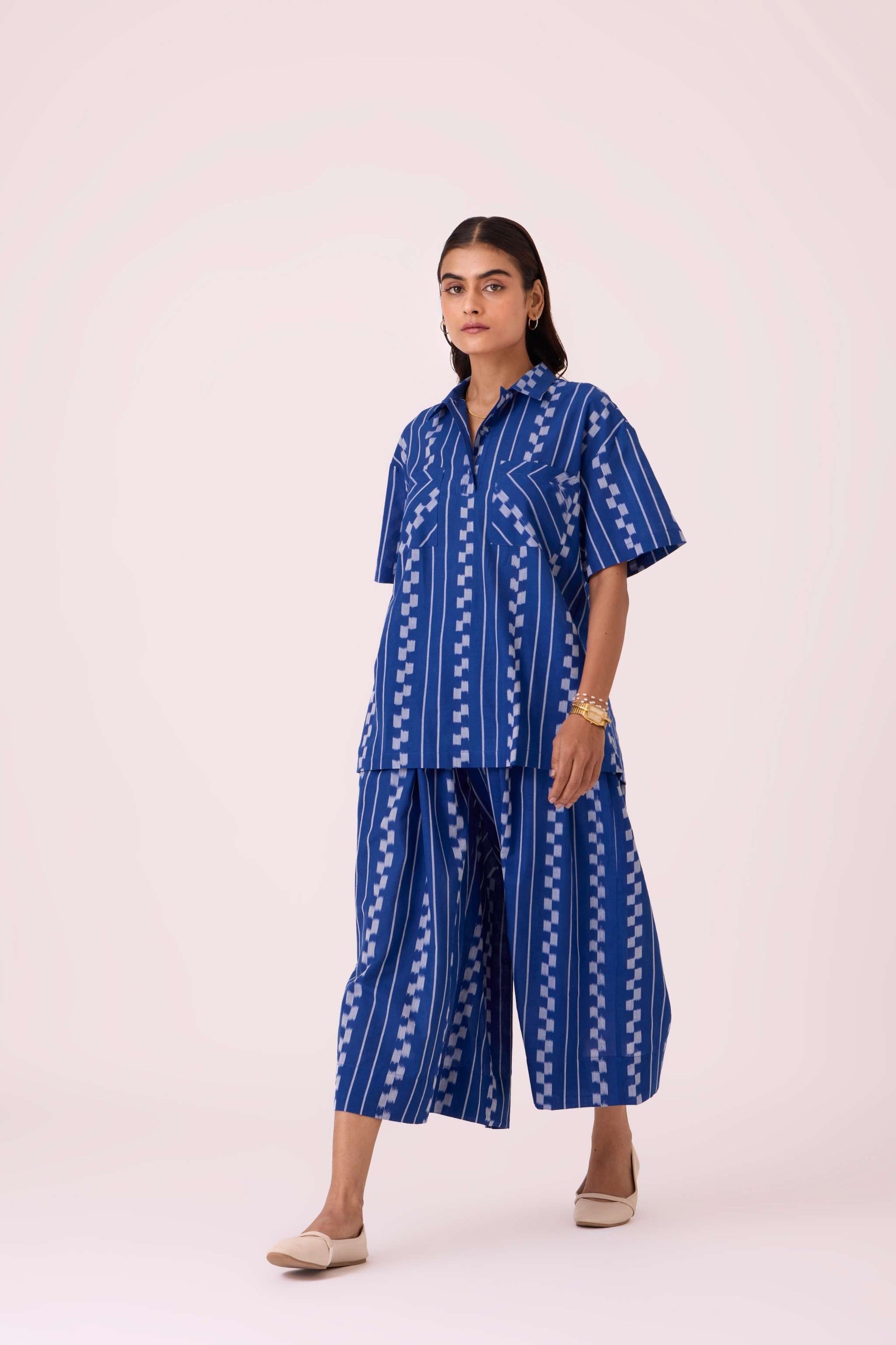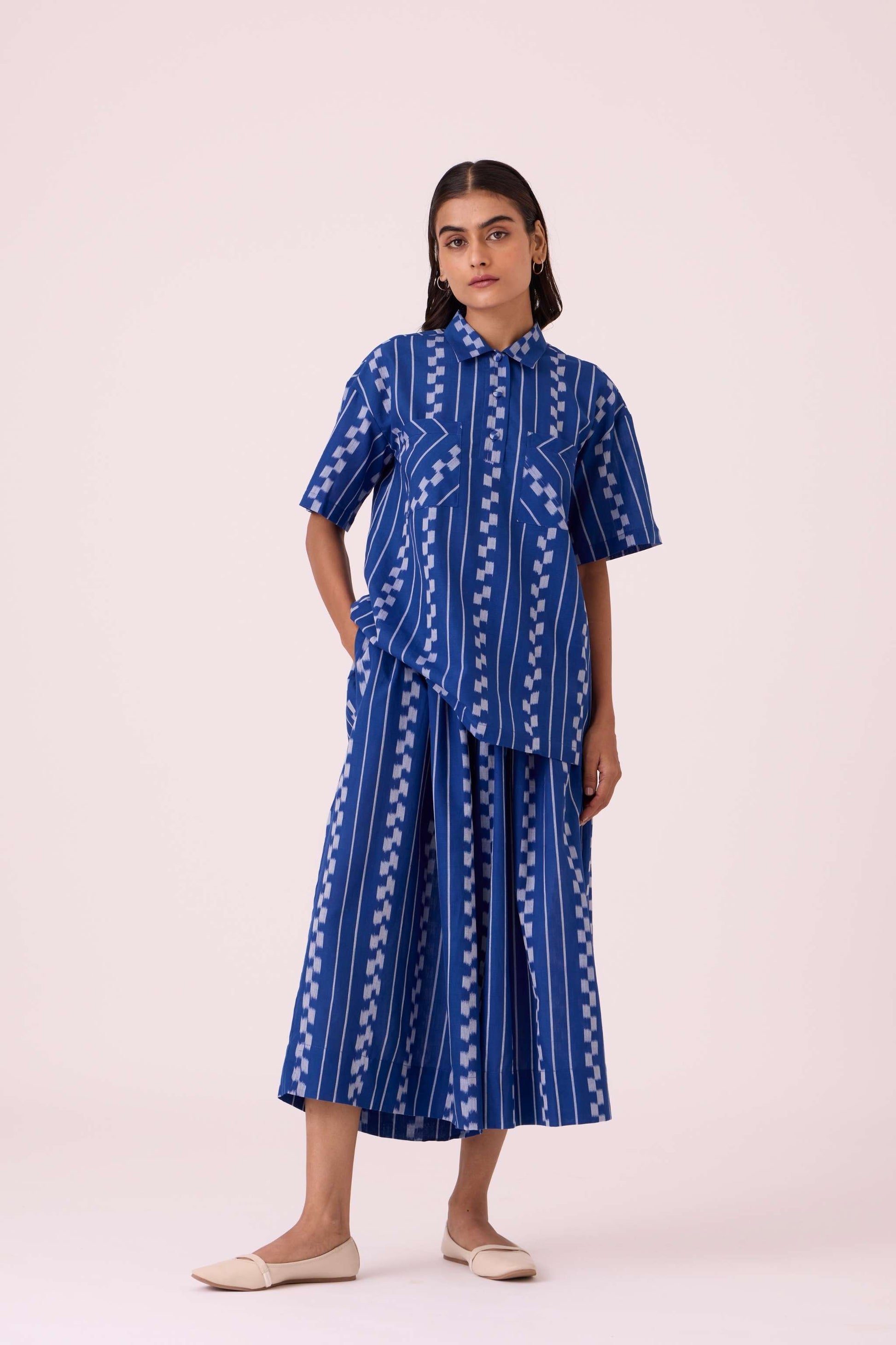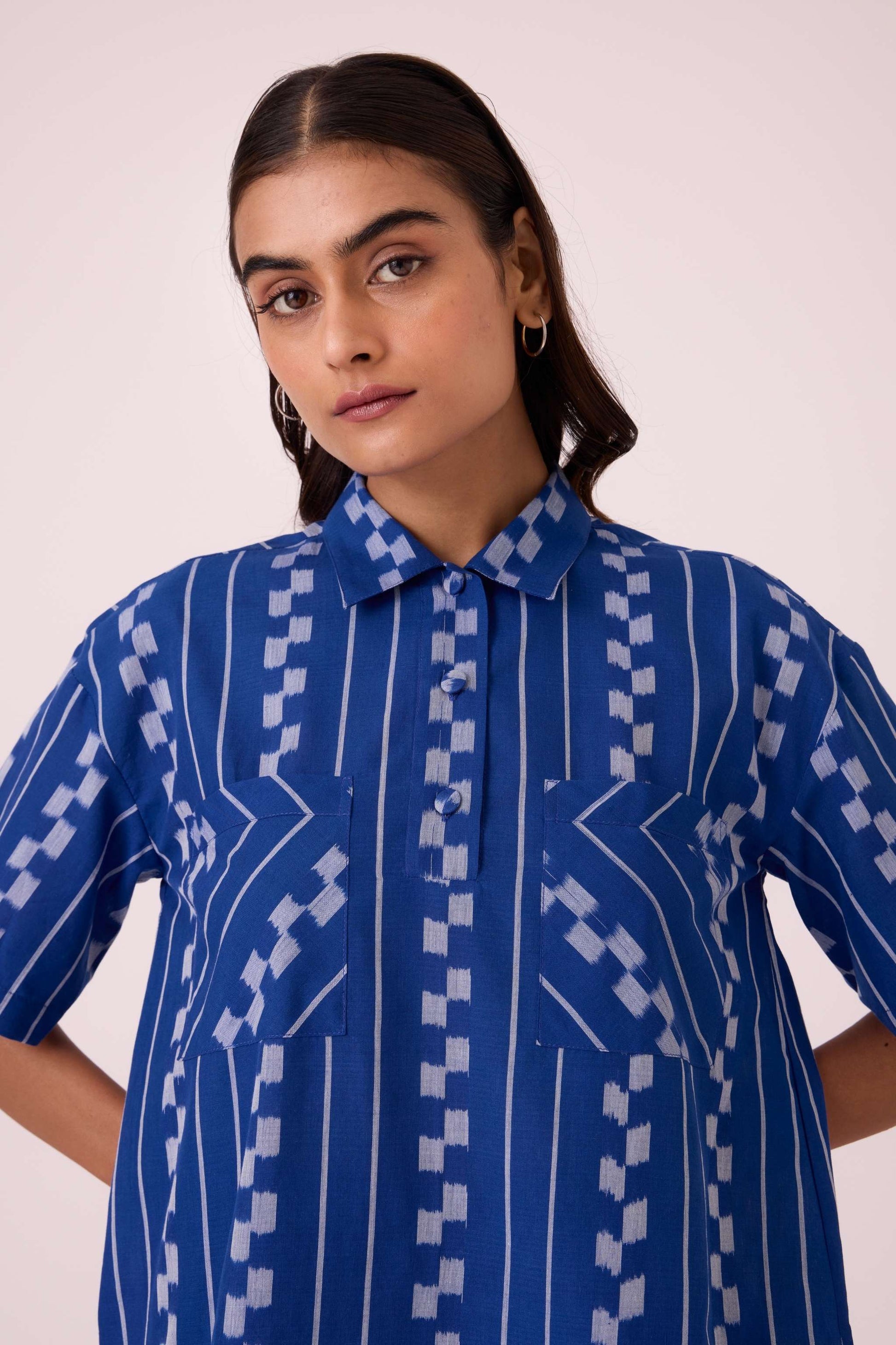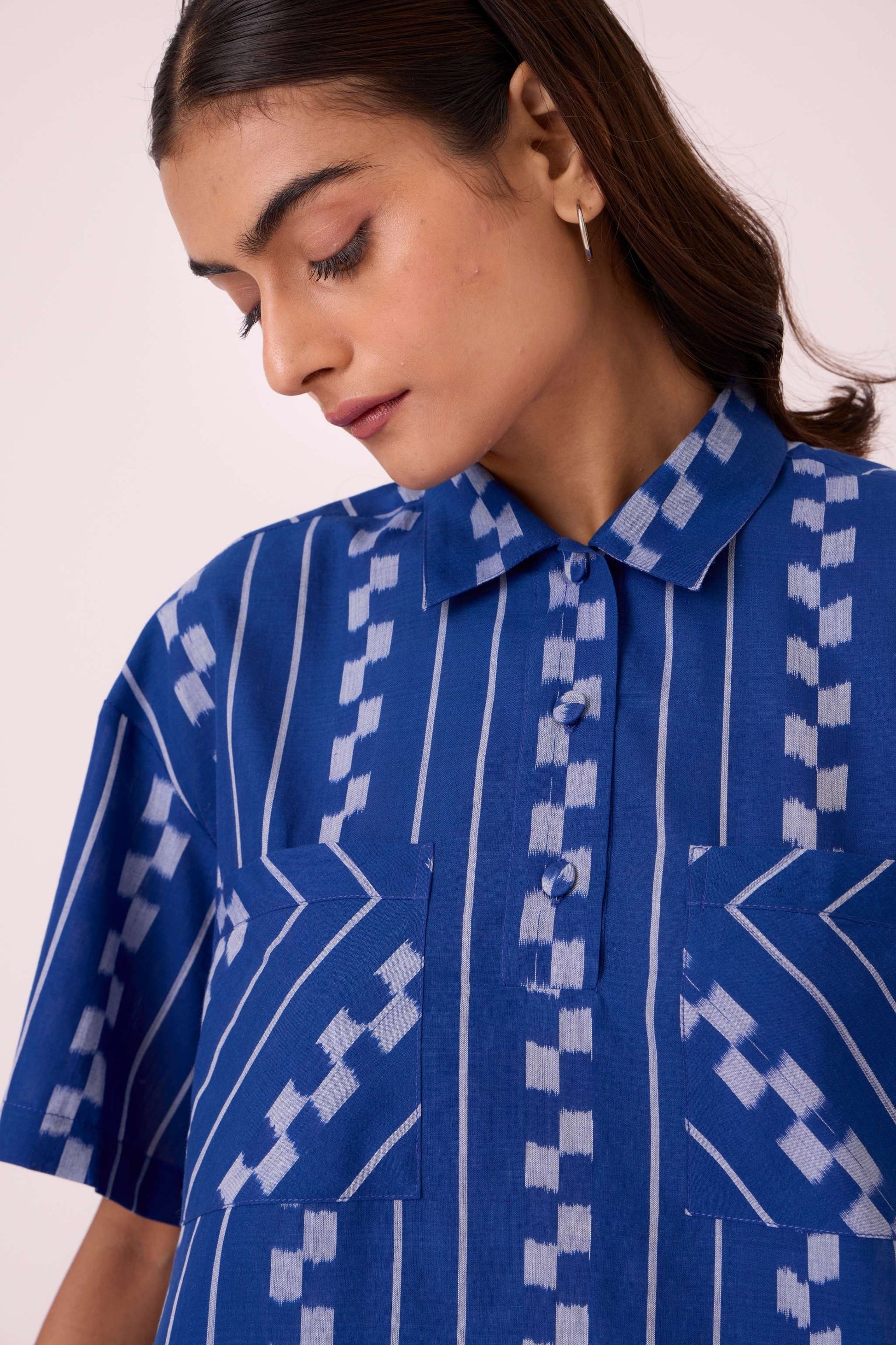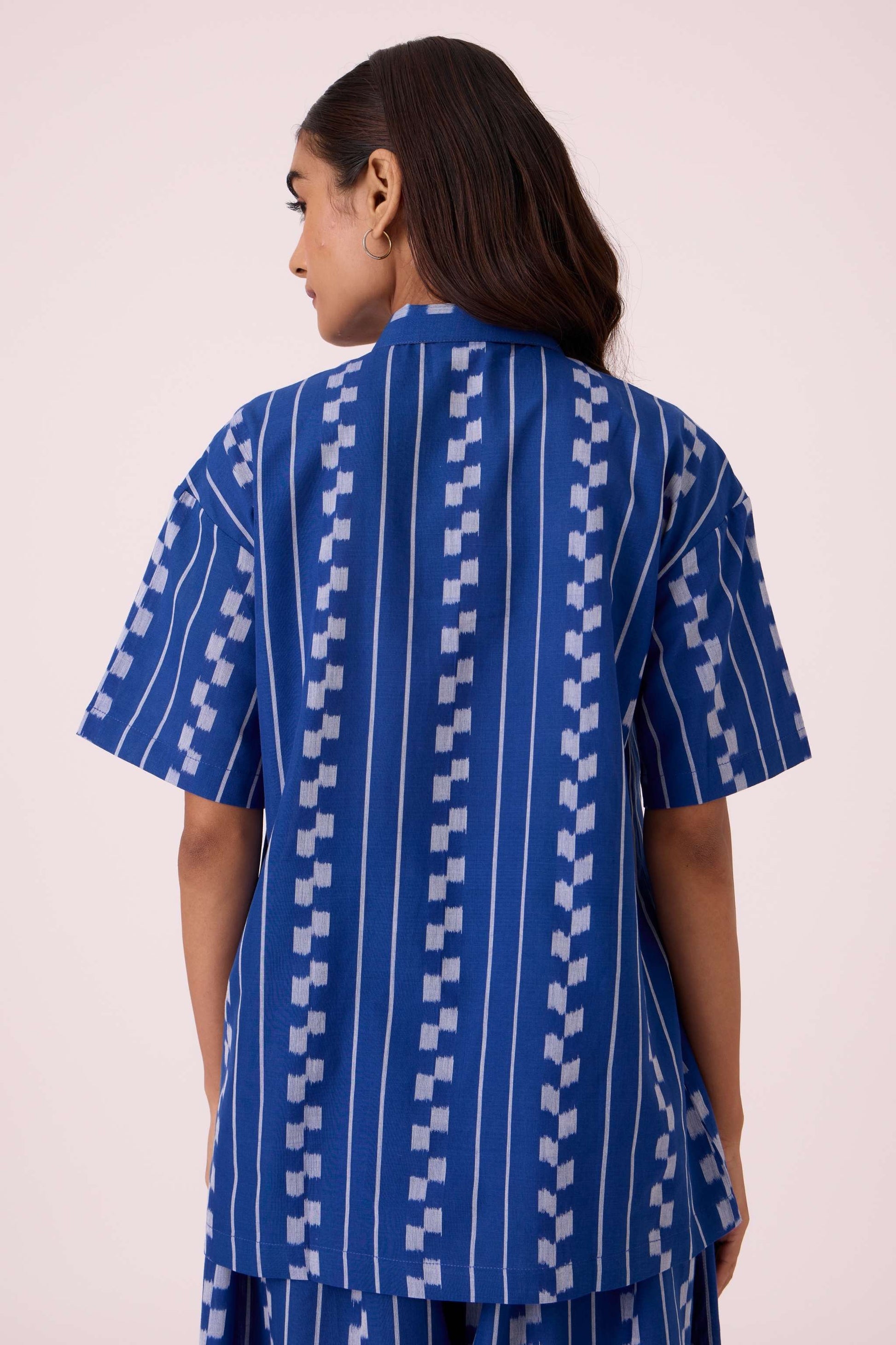 This Ikat design is developed in our studio and handwoven by artisans in Telangana. Slight irregularities are common and speak to the hand processes involved.