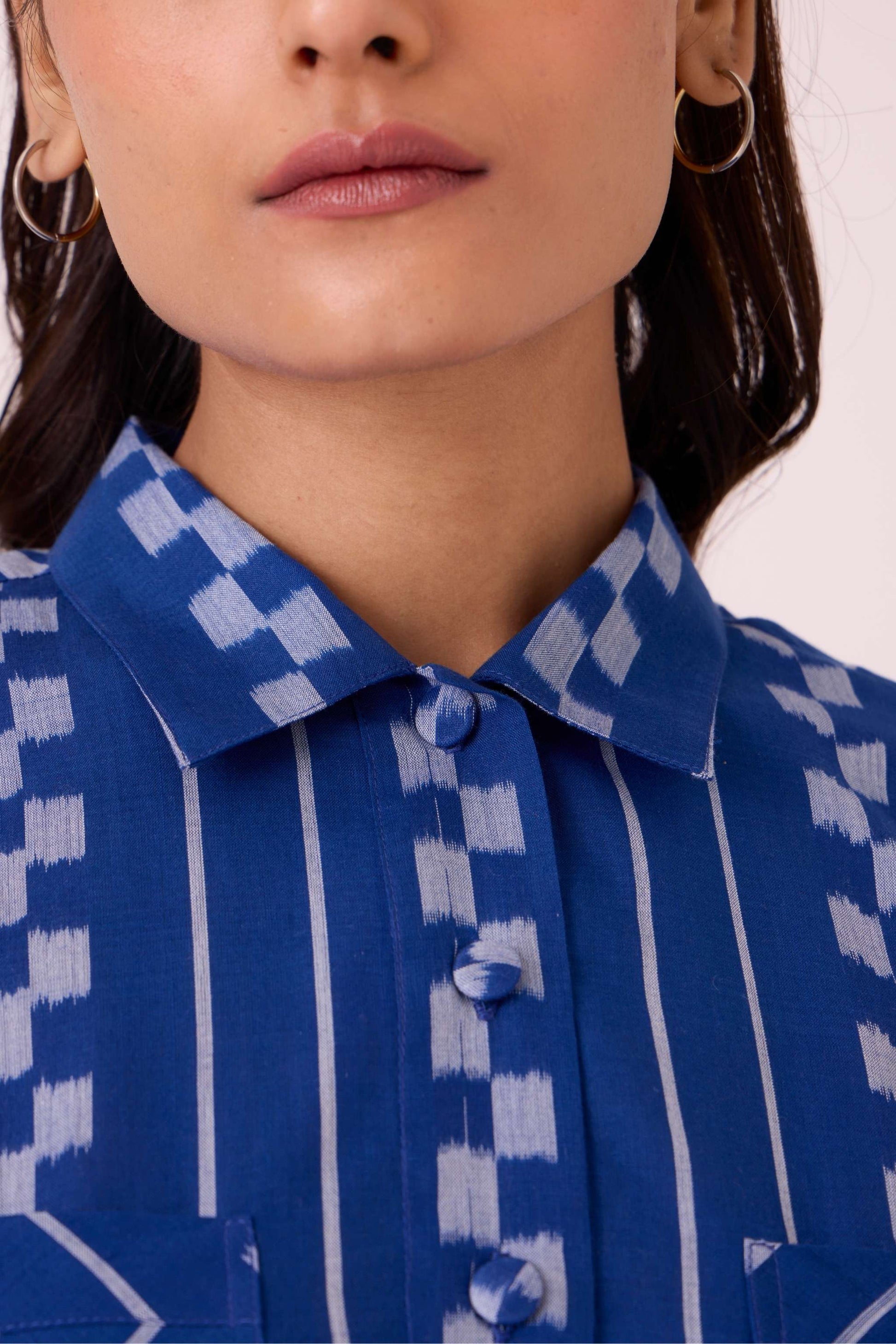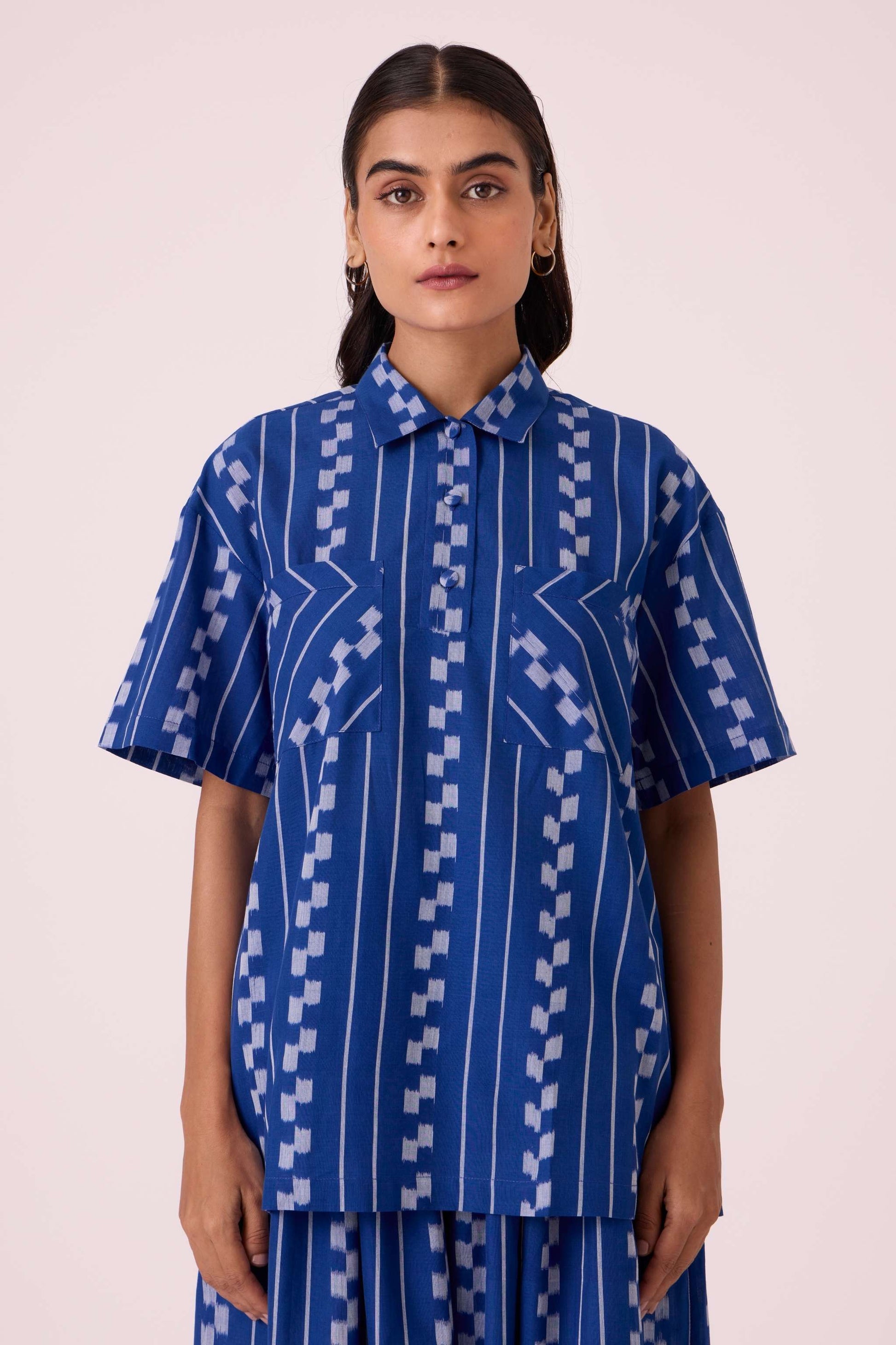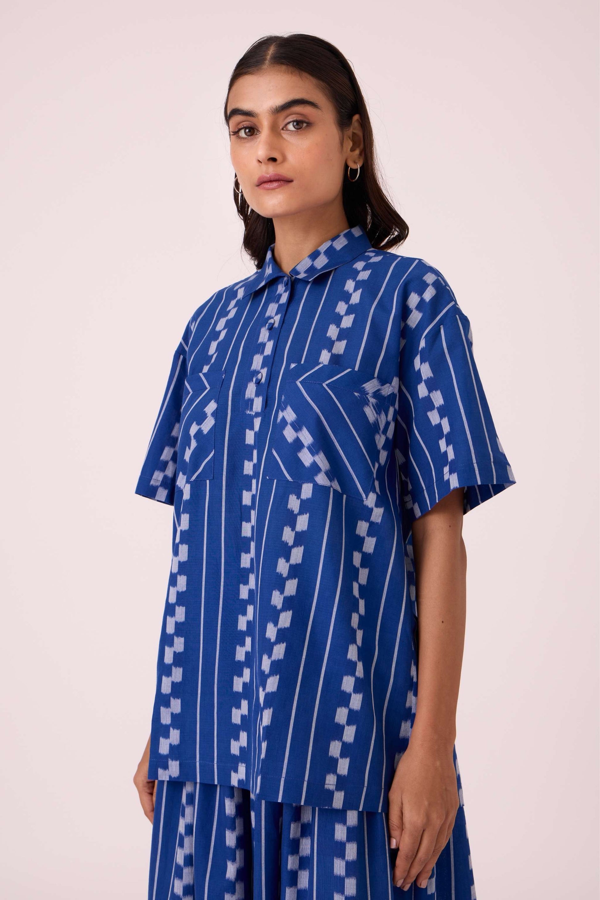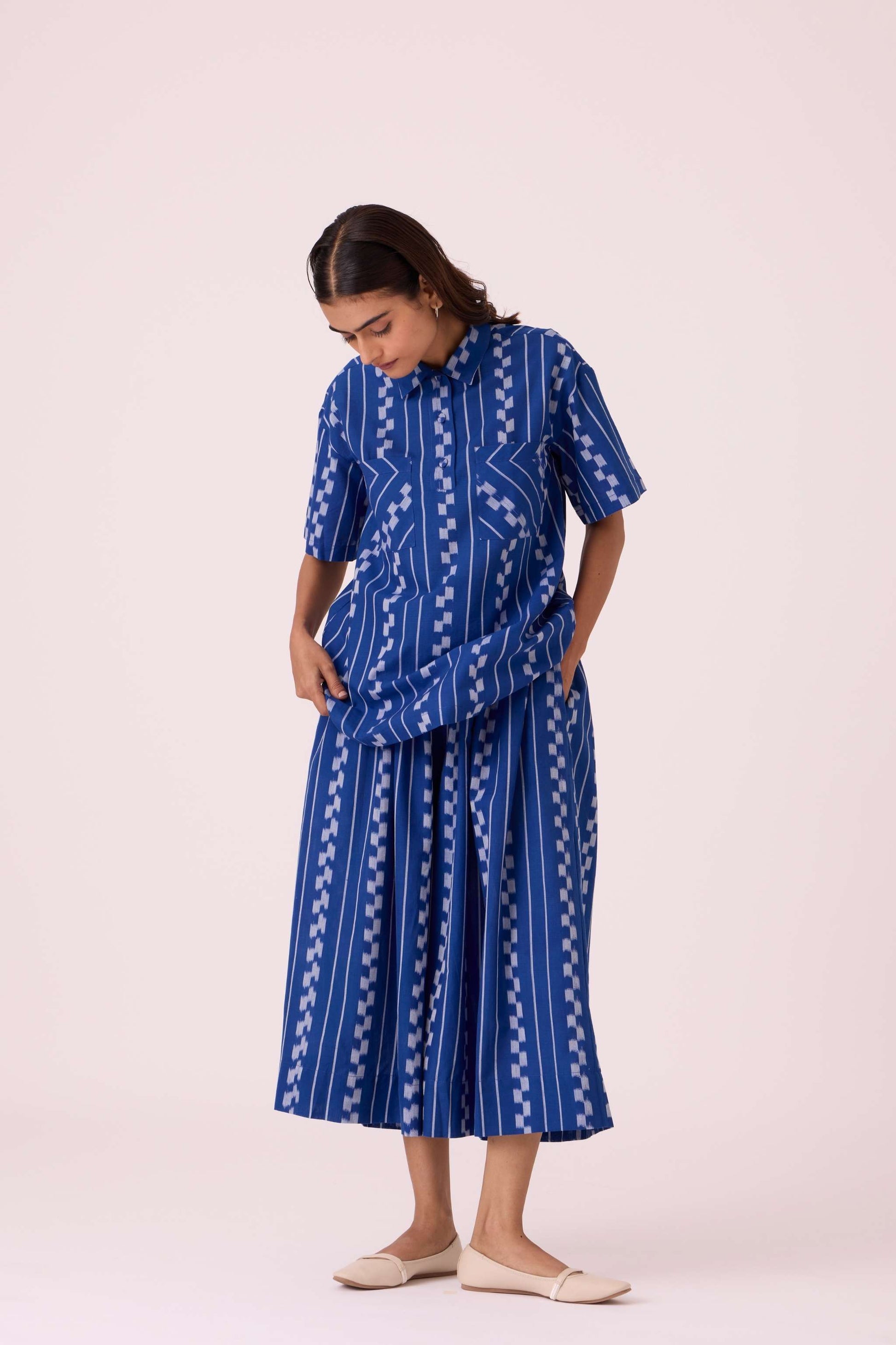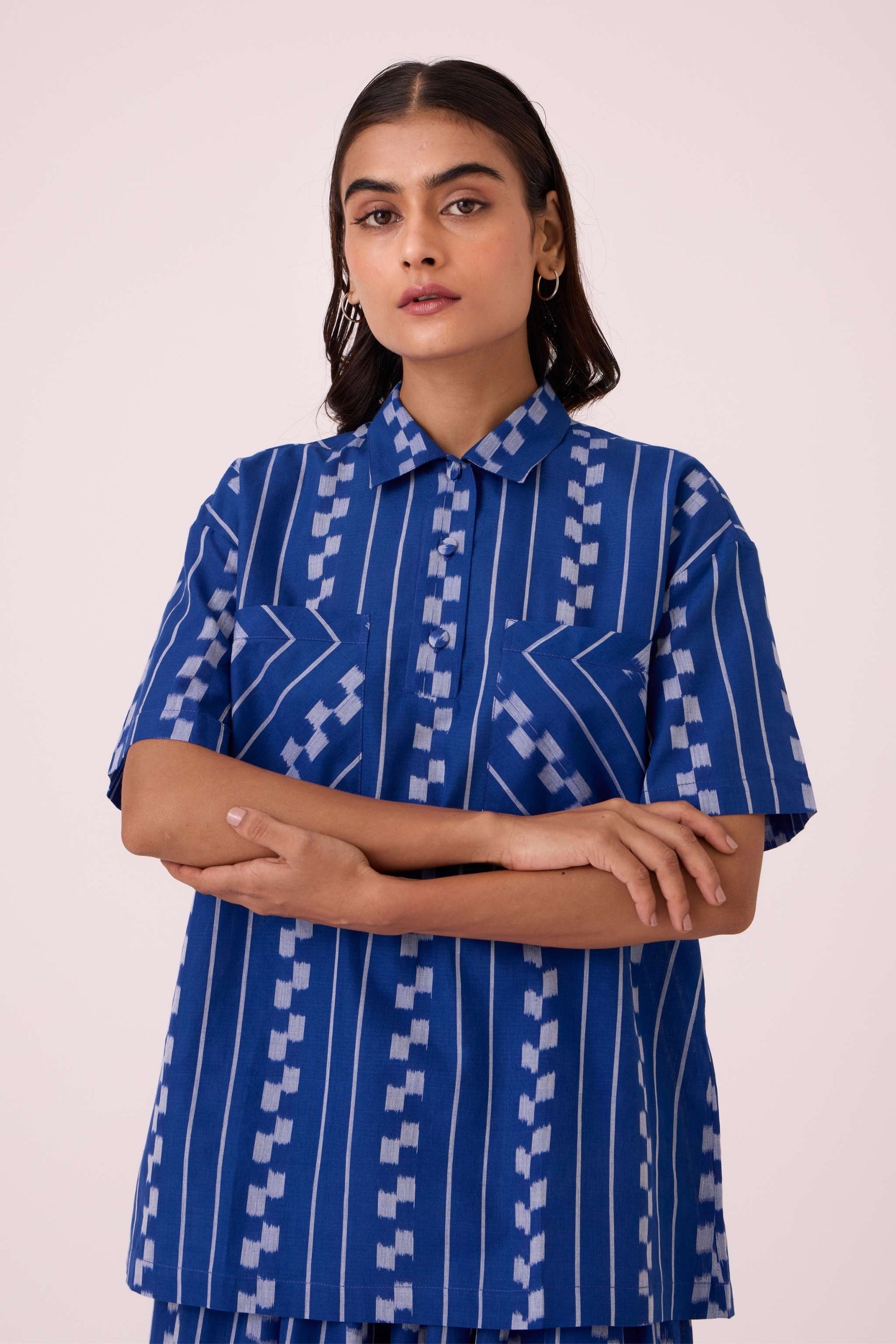 This Ikat design is developed in our studio and handwoven by artisans in Telangana. Slight irregularities are common and speak to the hand processes involved.
