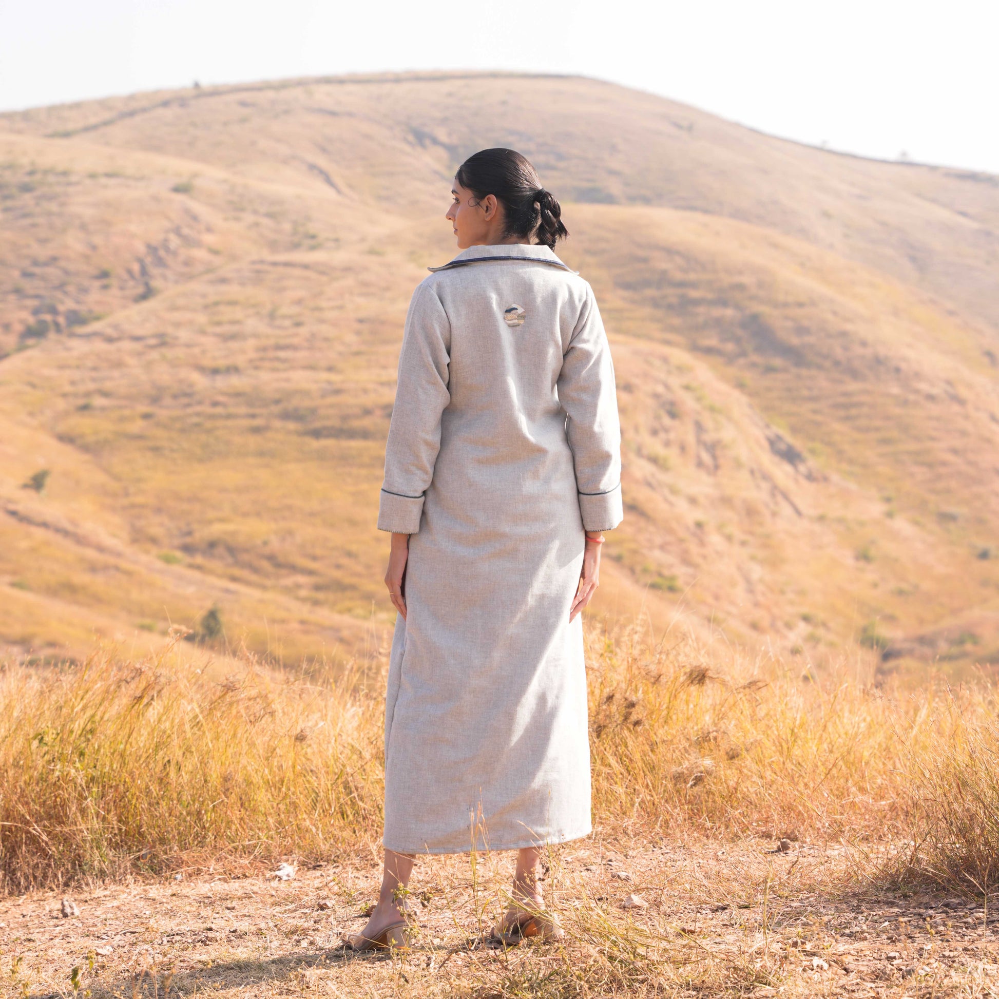 Introducing our Dress, a masterpiece of style and elegance, blending solids and prints seamlessly. Featuring a puritan collar adorned with dreamy organza flower details, this dress exudes timeless charm and sophistication.