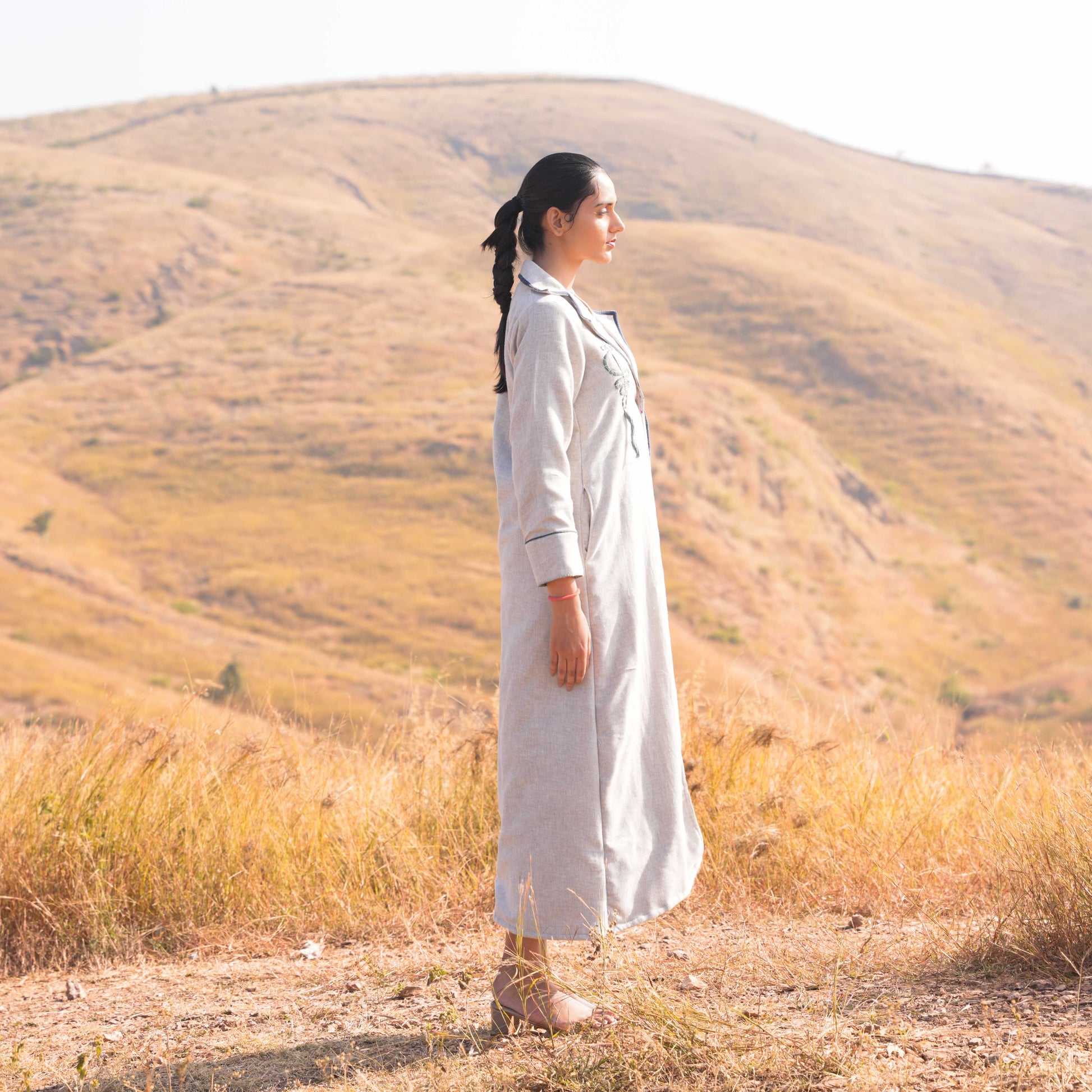 The combination of solids and prints creates a captivating visual contrast, while subtle tone- on-tone embroidery patches on the sleeves add a touch of refined elegance and texture. Delicate lace details further enhance the look , adding a romantic and feminine touch to the ensemble.
