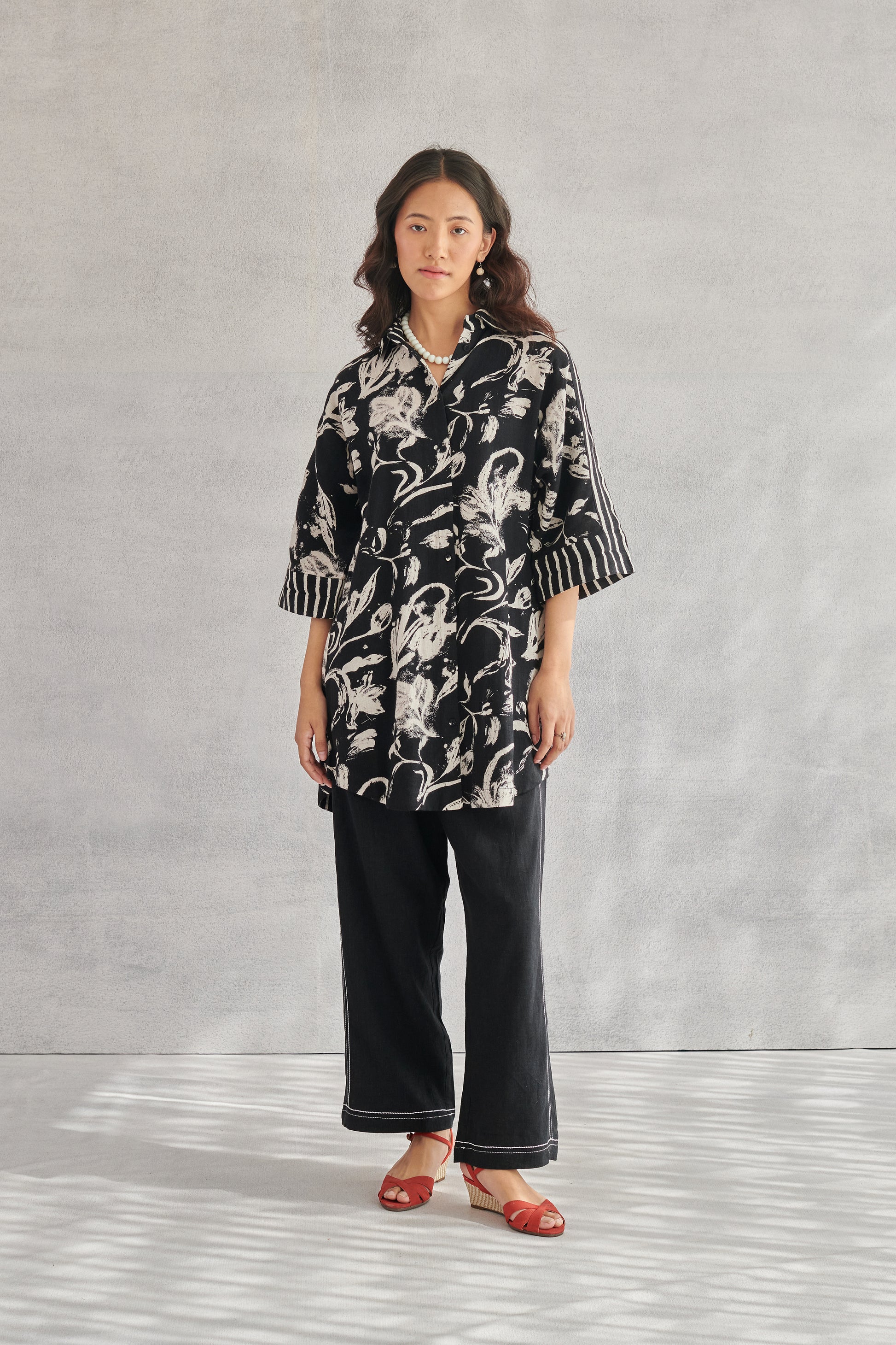 Longline silhouette for versatile styling—wear as a shirt or a short dress.