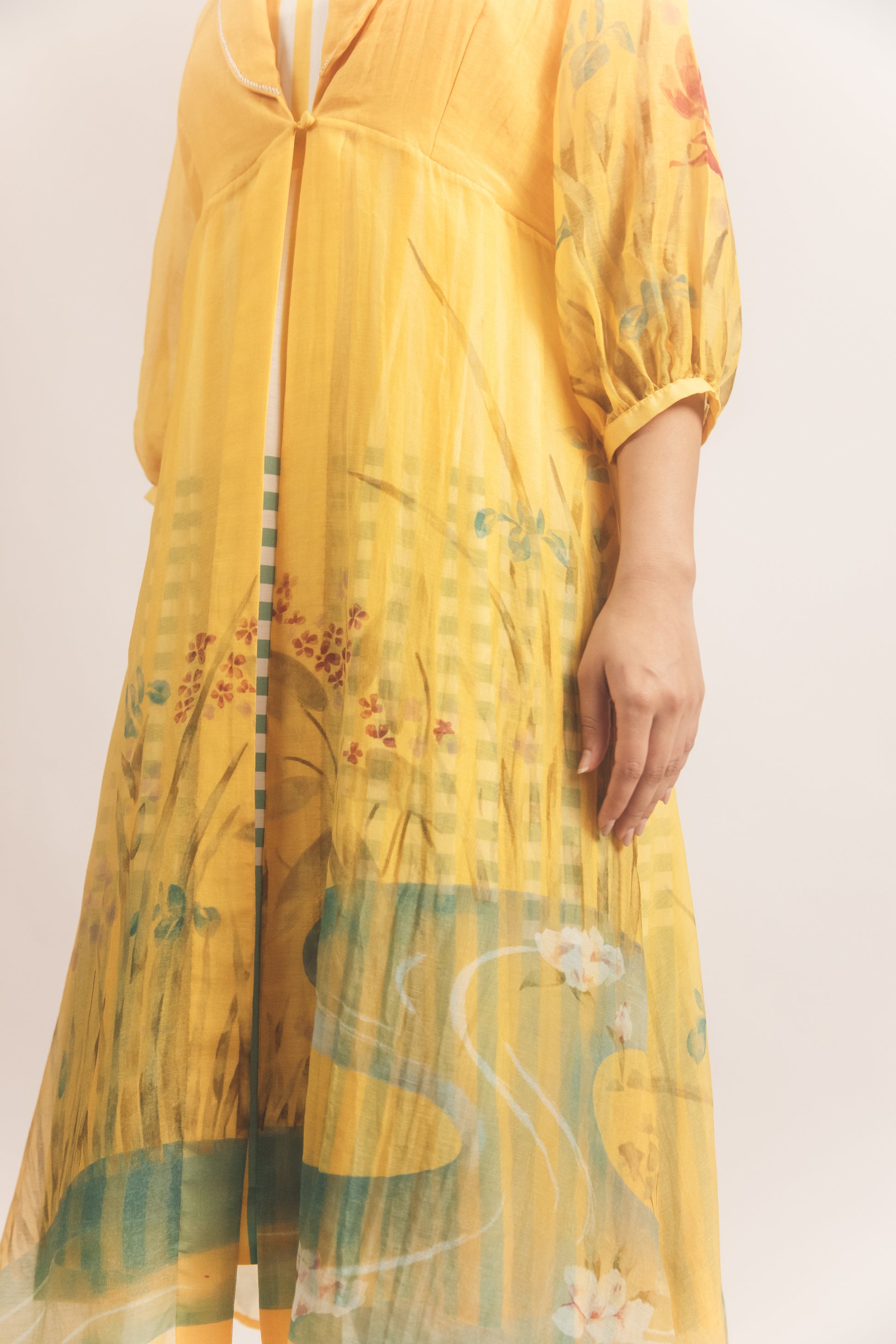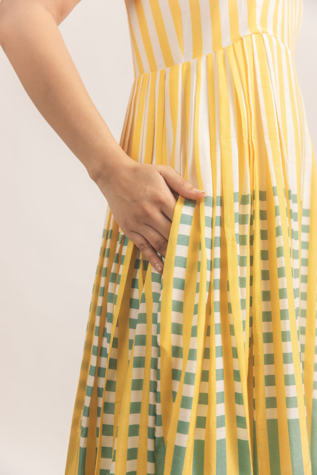 Collar cross stitch embroidered jacket with pleated dress with pockets