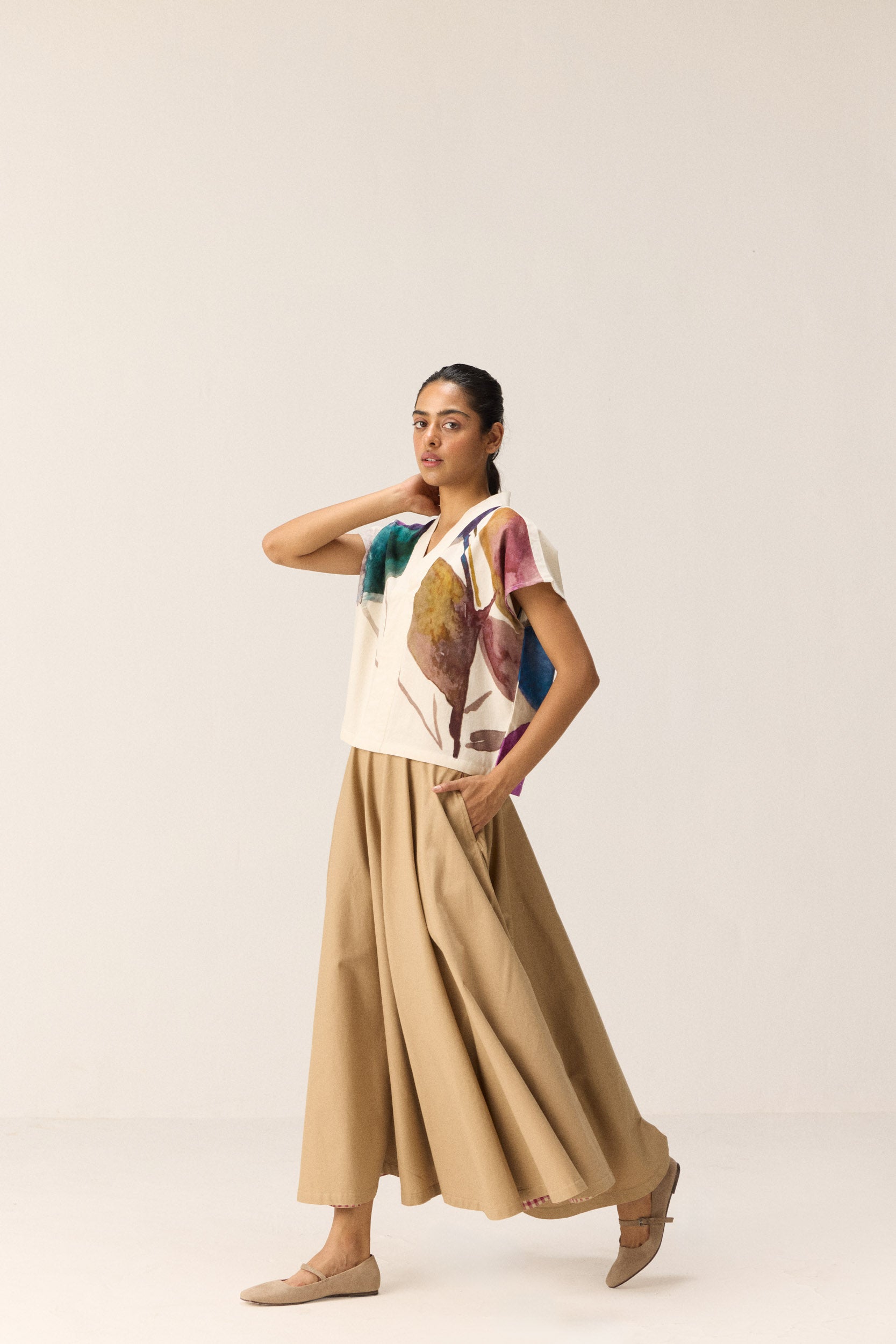 A kimono inspired off white with beautiful coloured florals and V neckline. Crafted in cotton mul, it is lightweight and breathable.