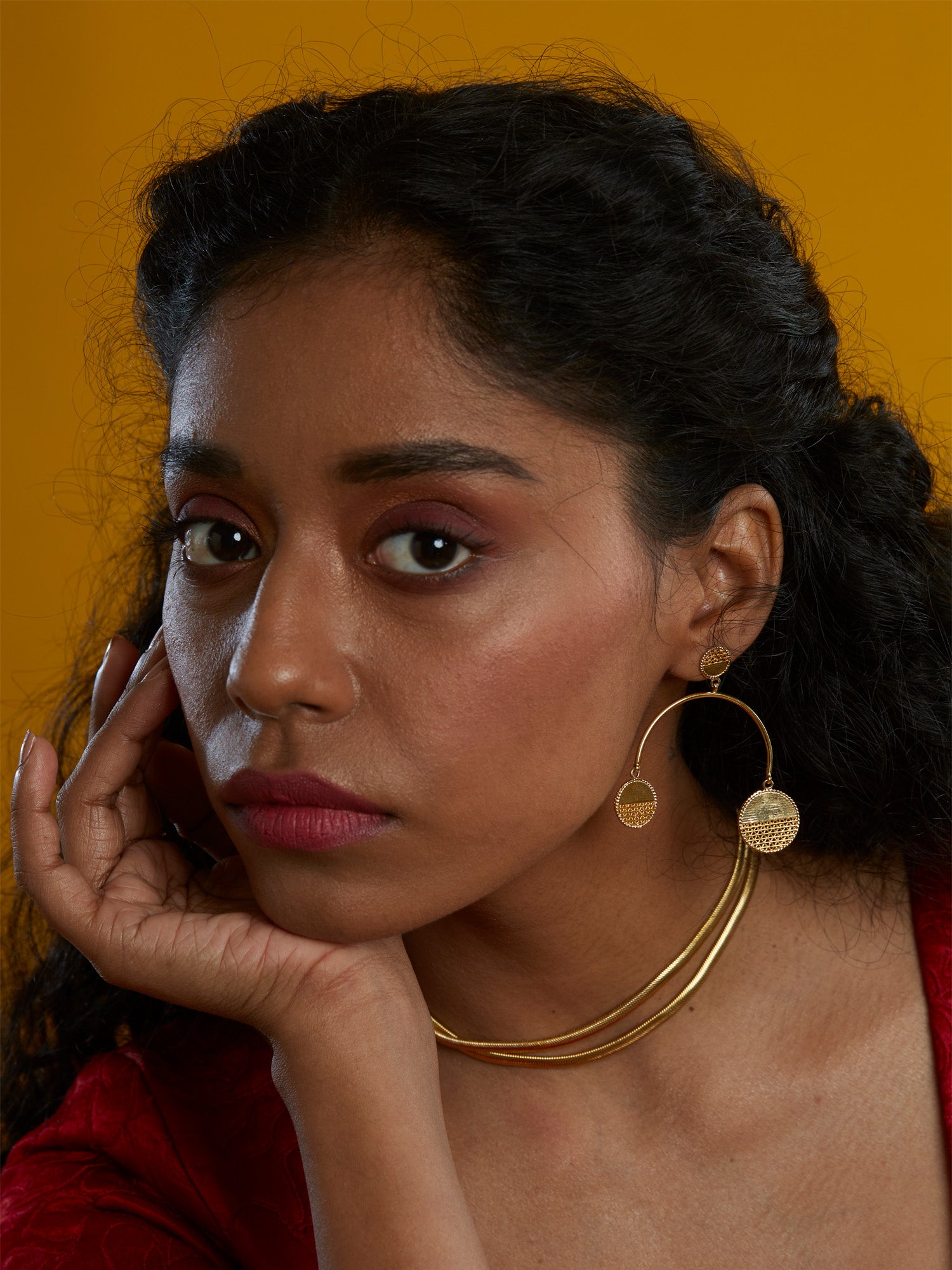 Reclaimed brass body with 92.5 silver earposts. Plated with 22K gold.