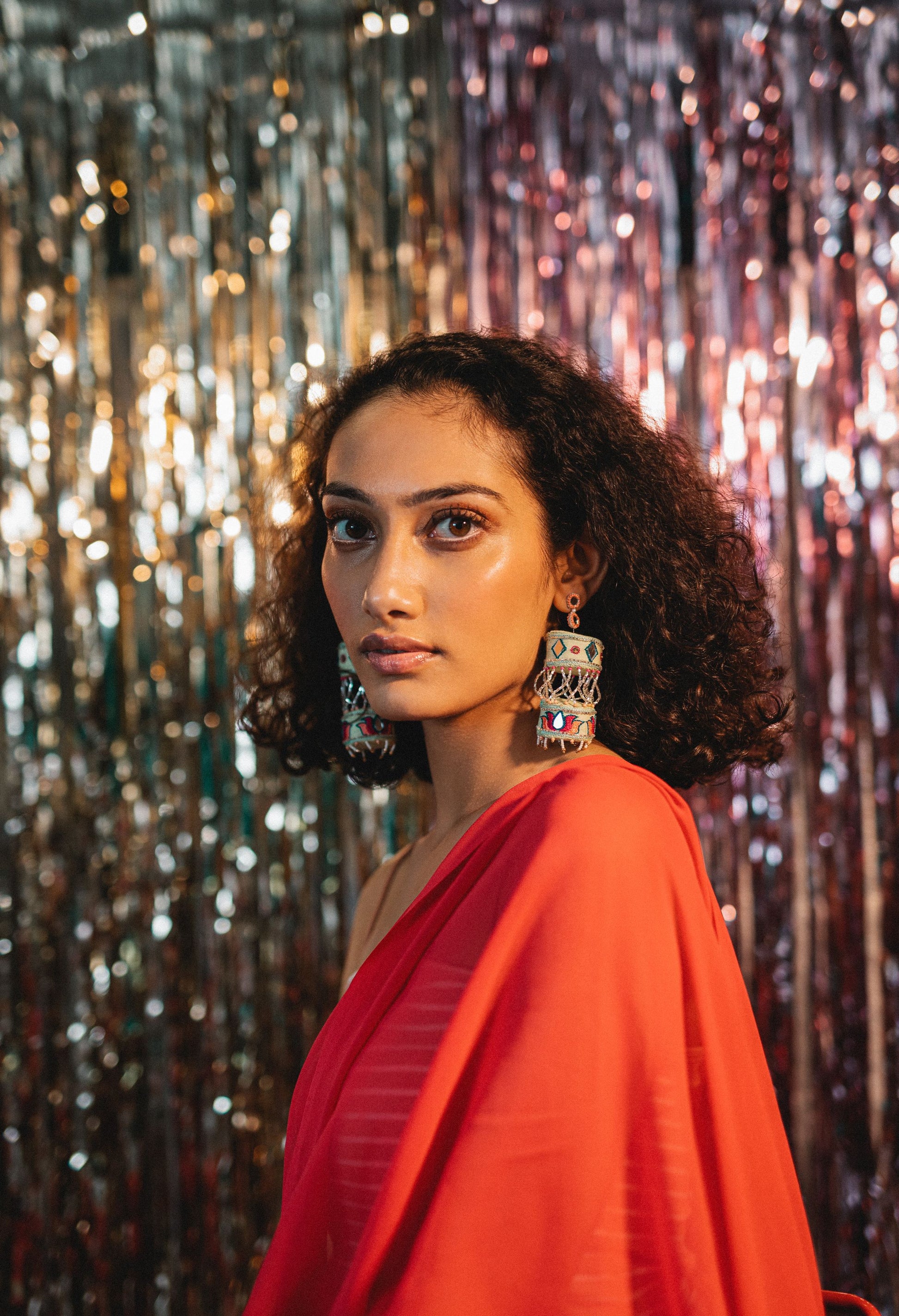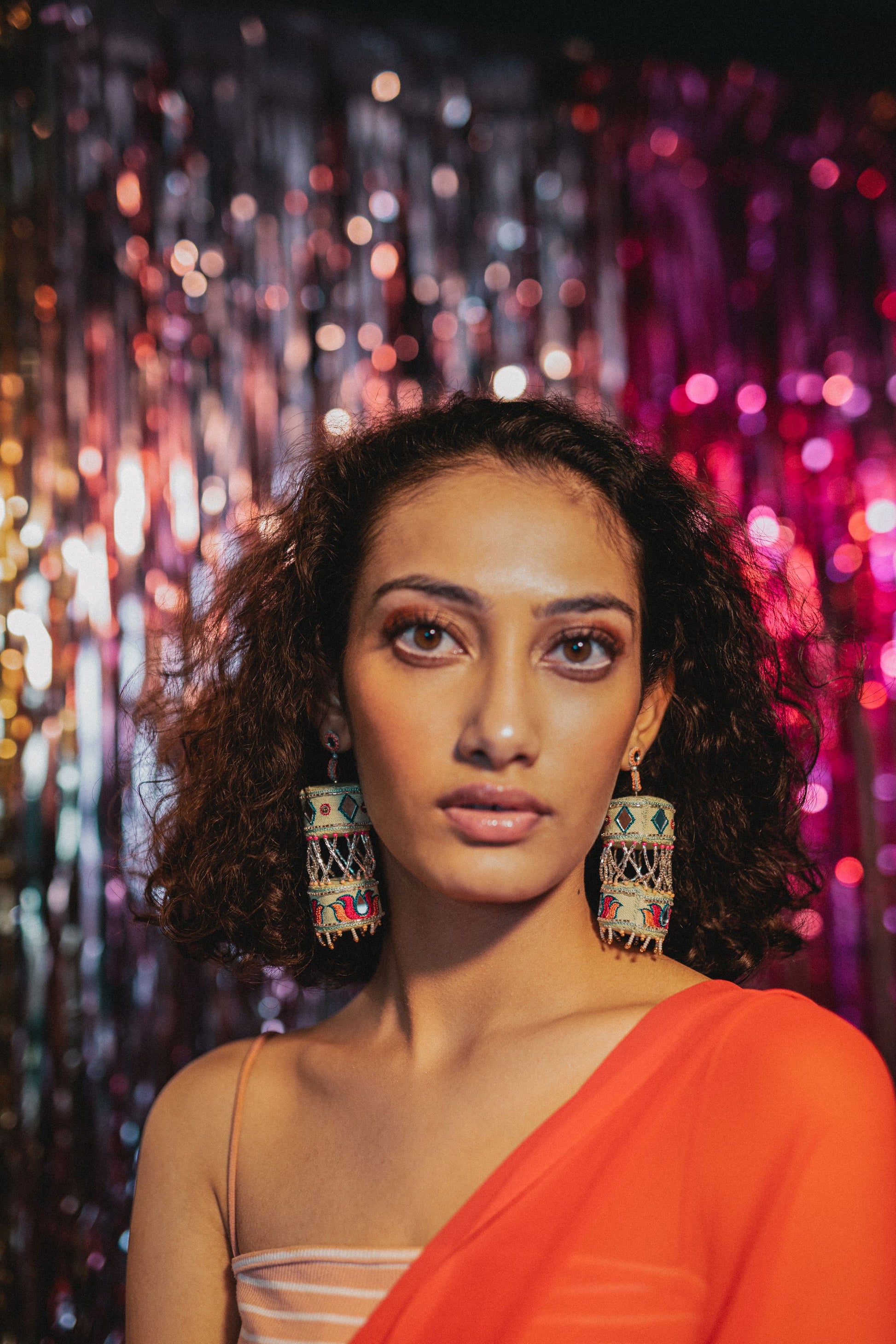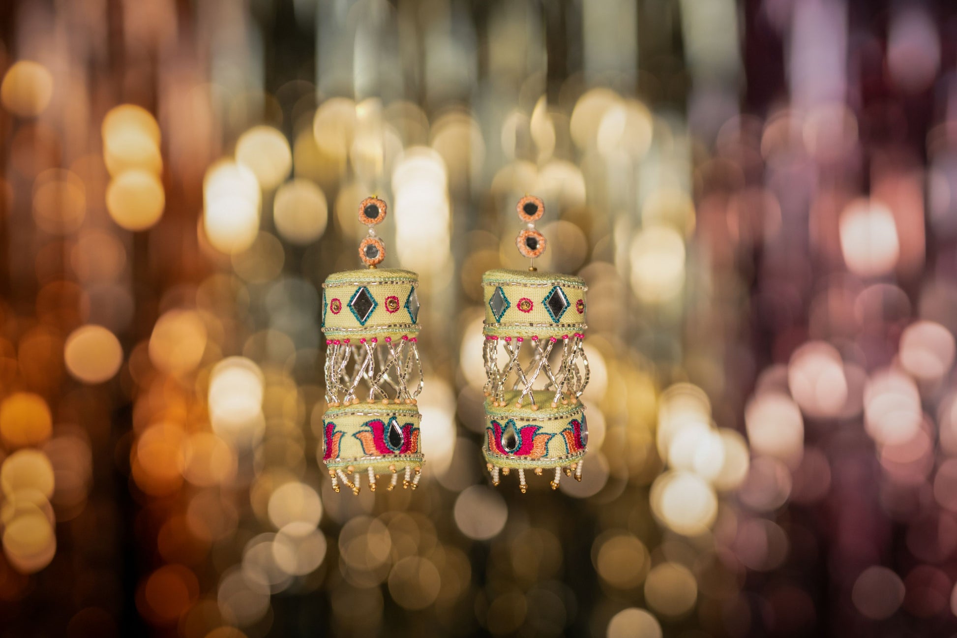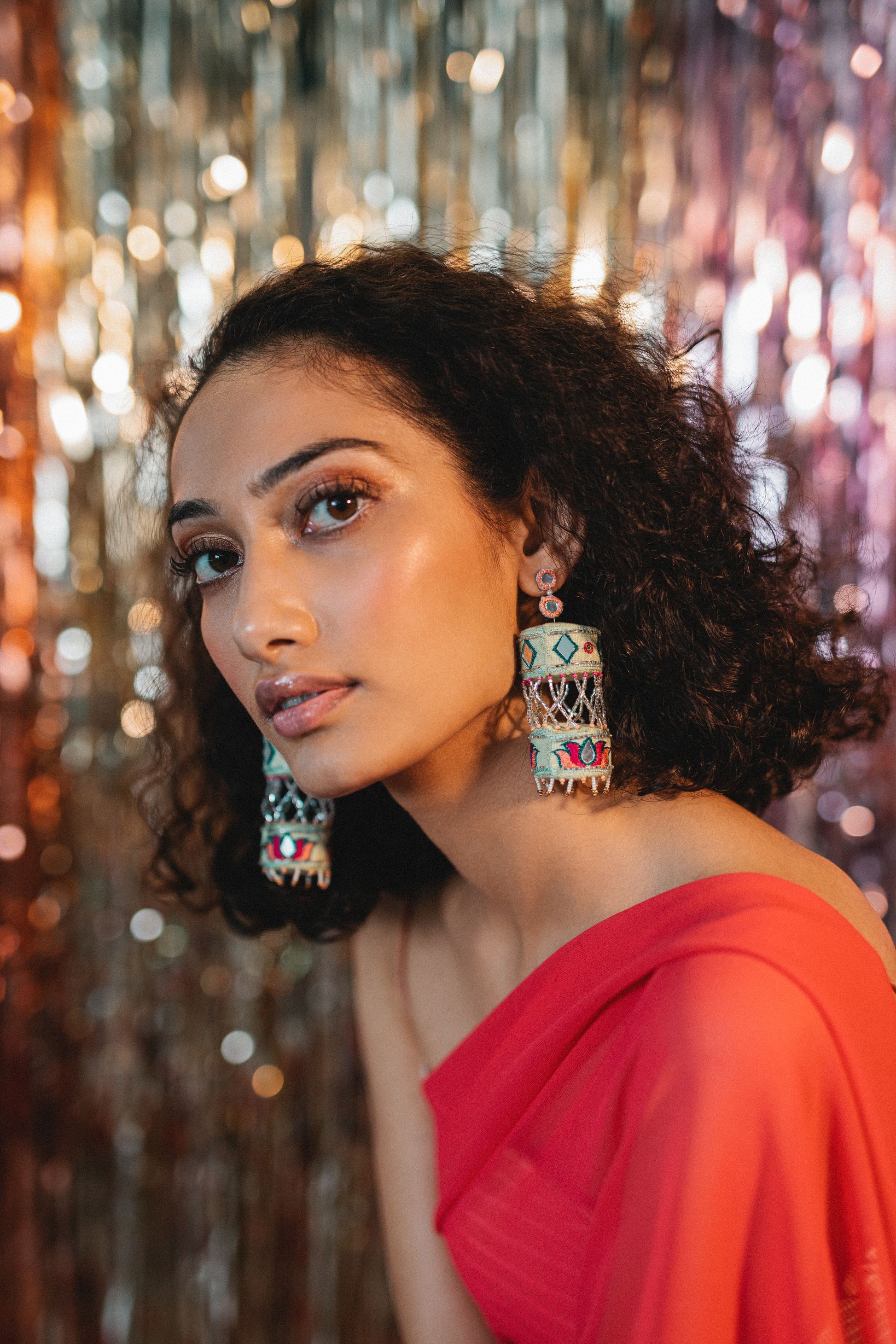 Handmade and hand embroidered earrings with our uniquely designed Lotus motif, detailed with beads. Provided with a stud at back. Light weight and easy to carry.
