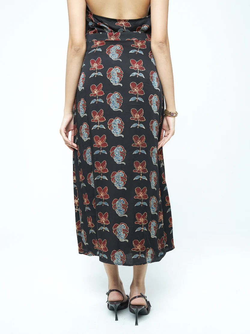 Description: A straight-cut midi skirt in modal featuring the Blooming Beast print. Designed to sit smoothly on the waist and fall with a clean, fluid drape, it becomes an understated yet striking piece.