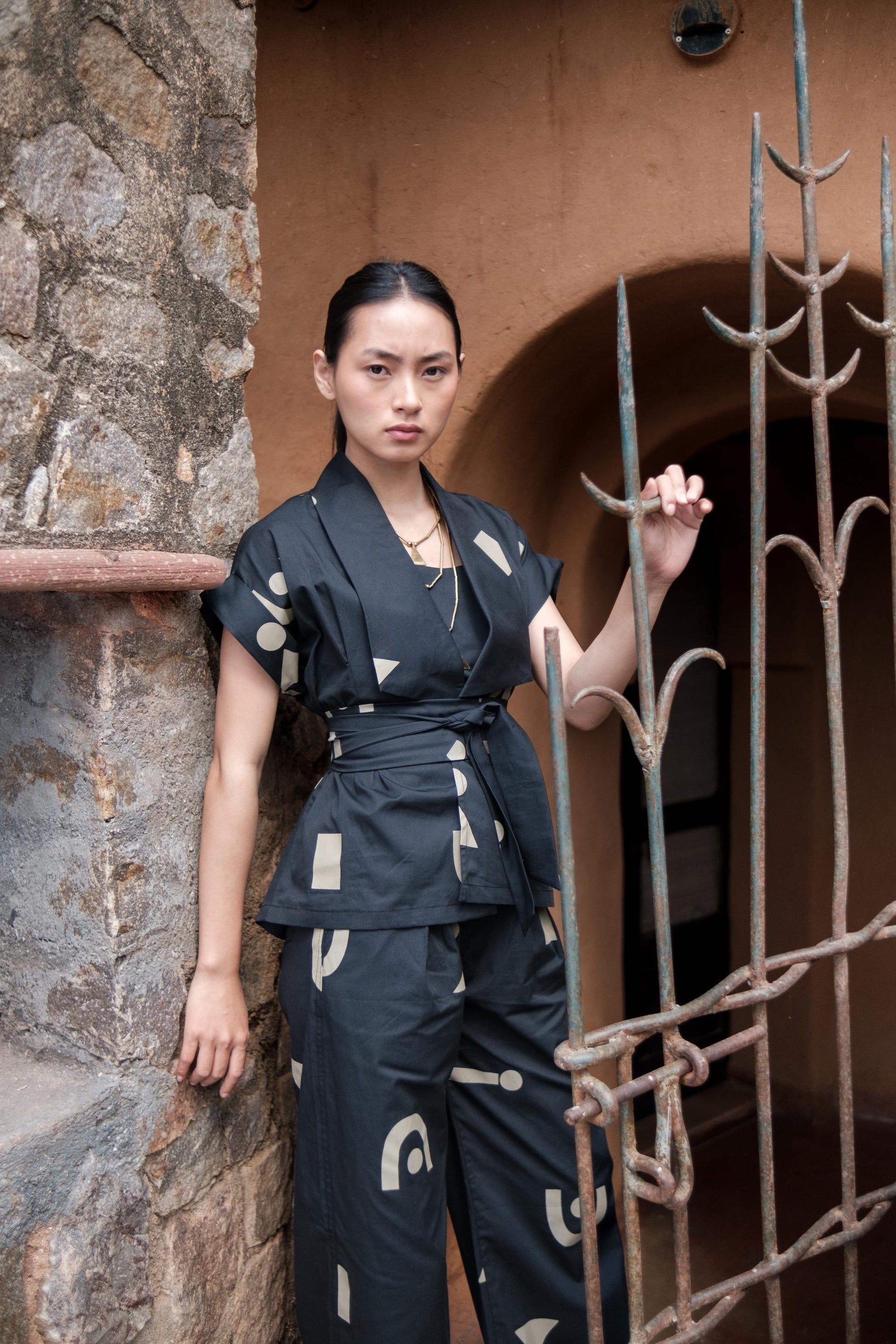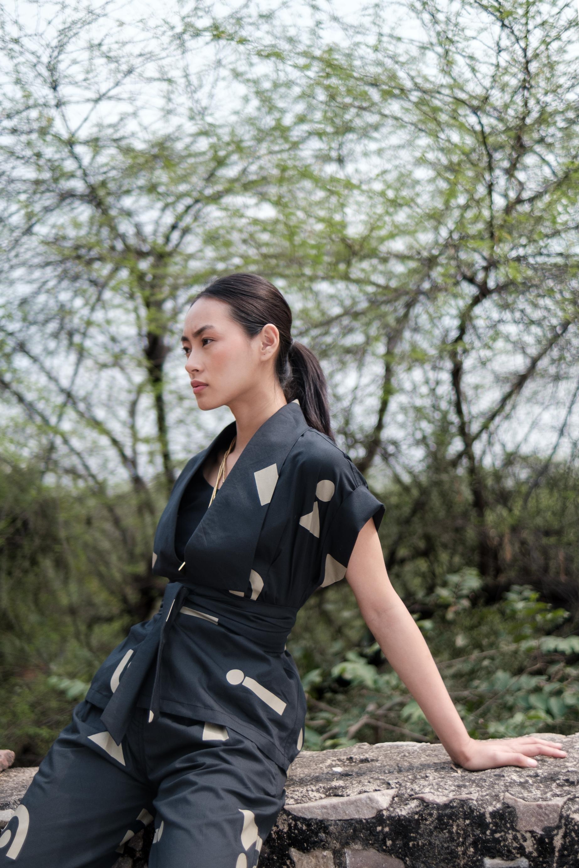 This shawl collar summer jacket featuring a contrasting piping detail and a statement belt can elevate any look and is surely a head turner.