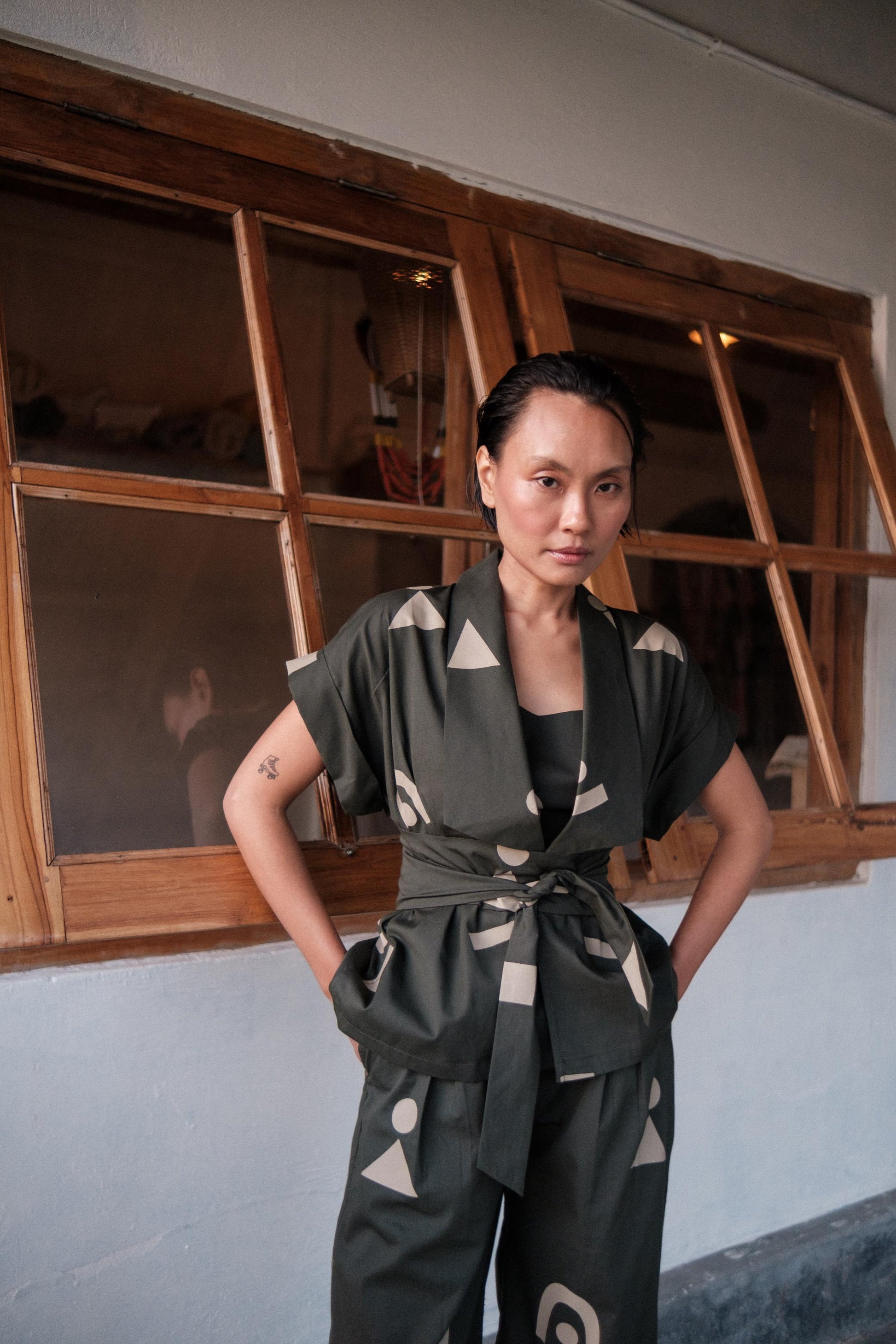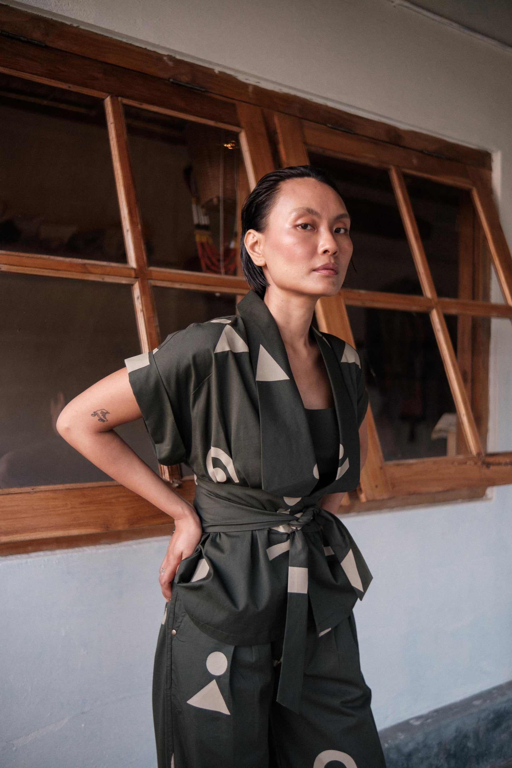 This shawl collar summer jacket  featuring a contrasting piping detail and a statement belt can elevate any look and is surely a head turner.