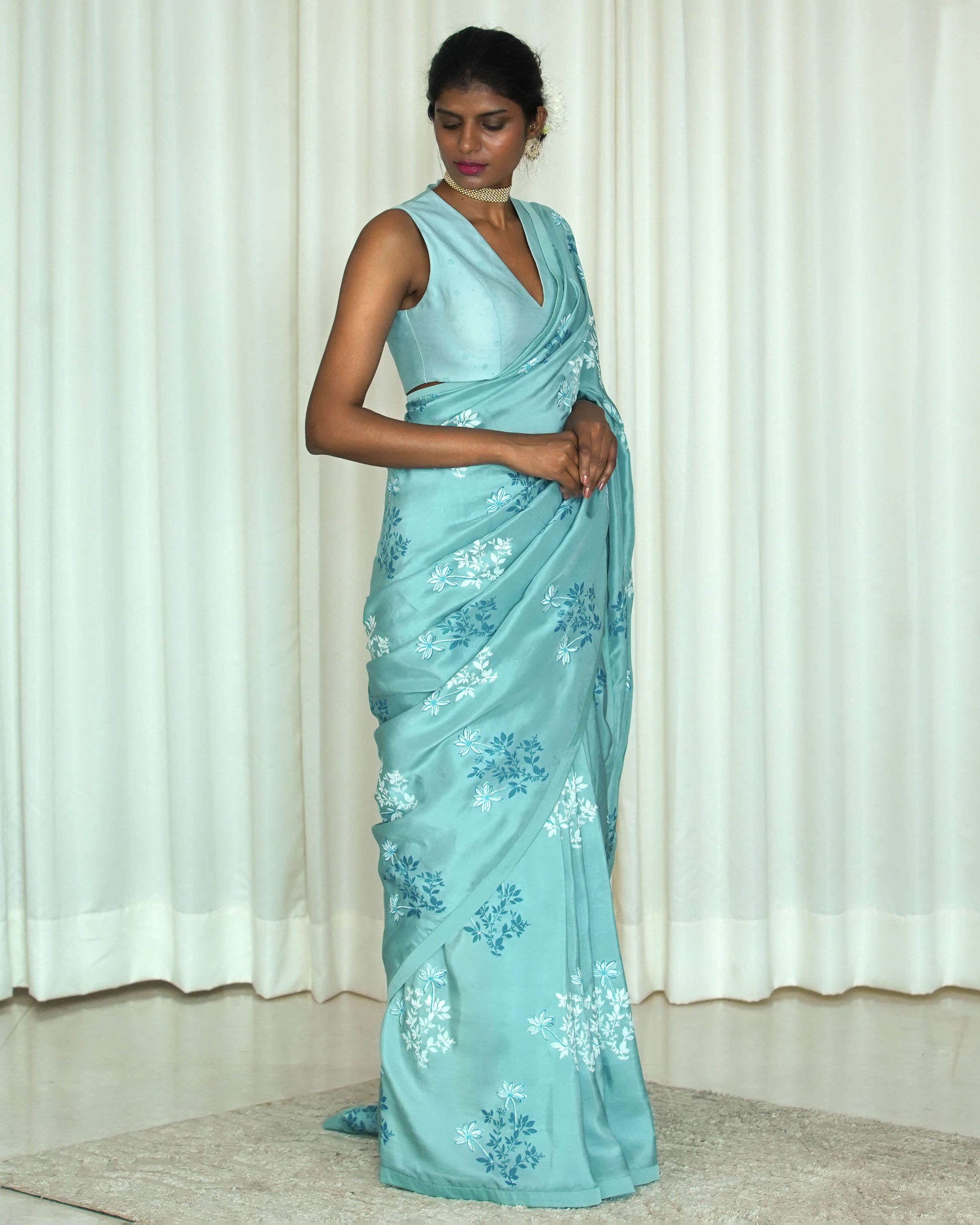 Printed Blue Sari