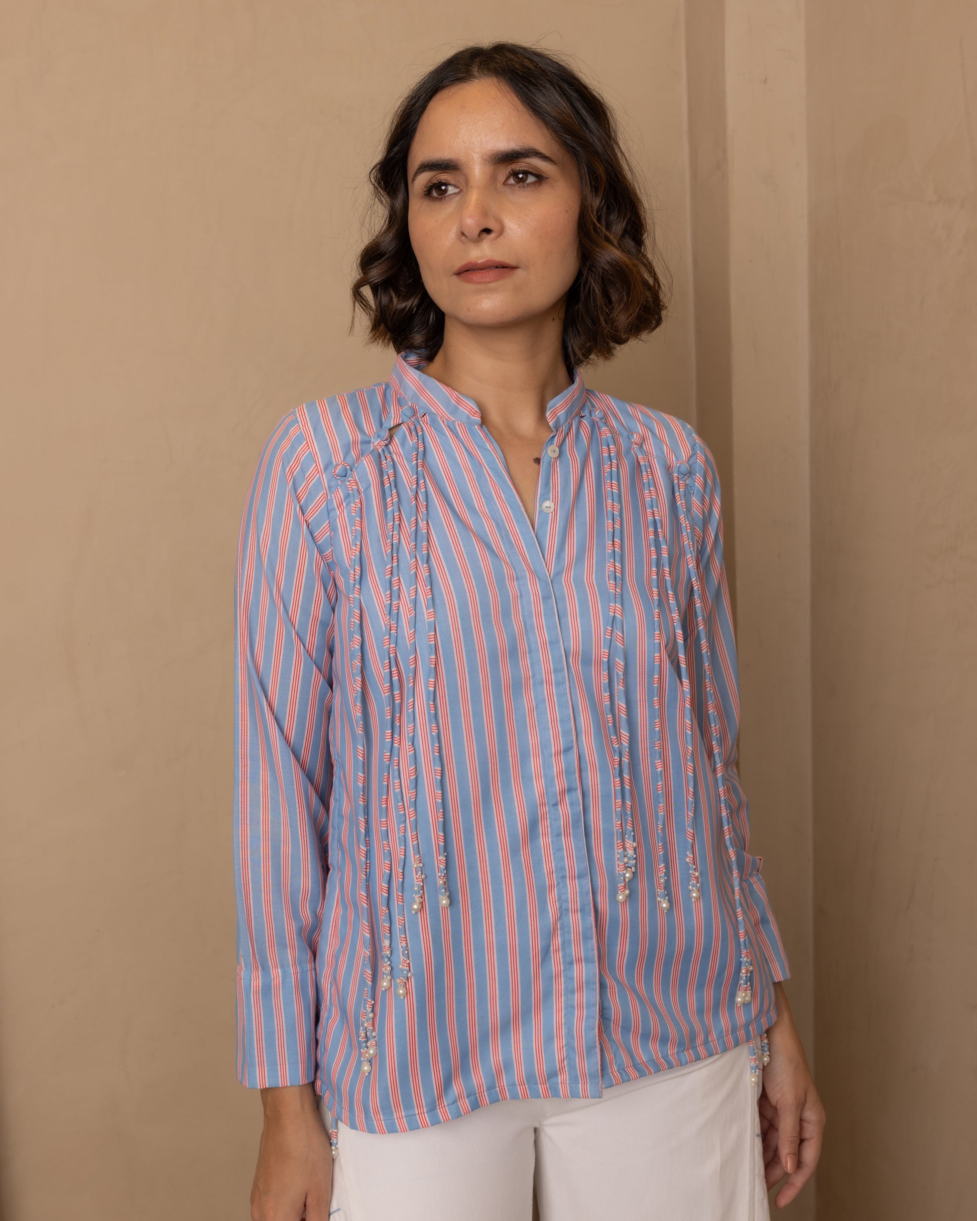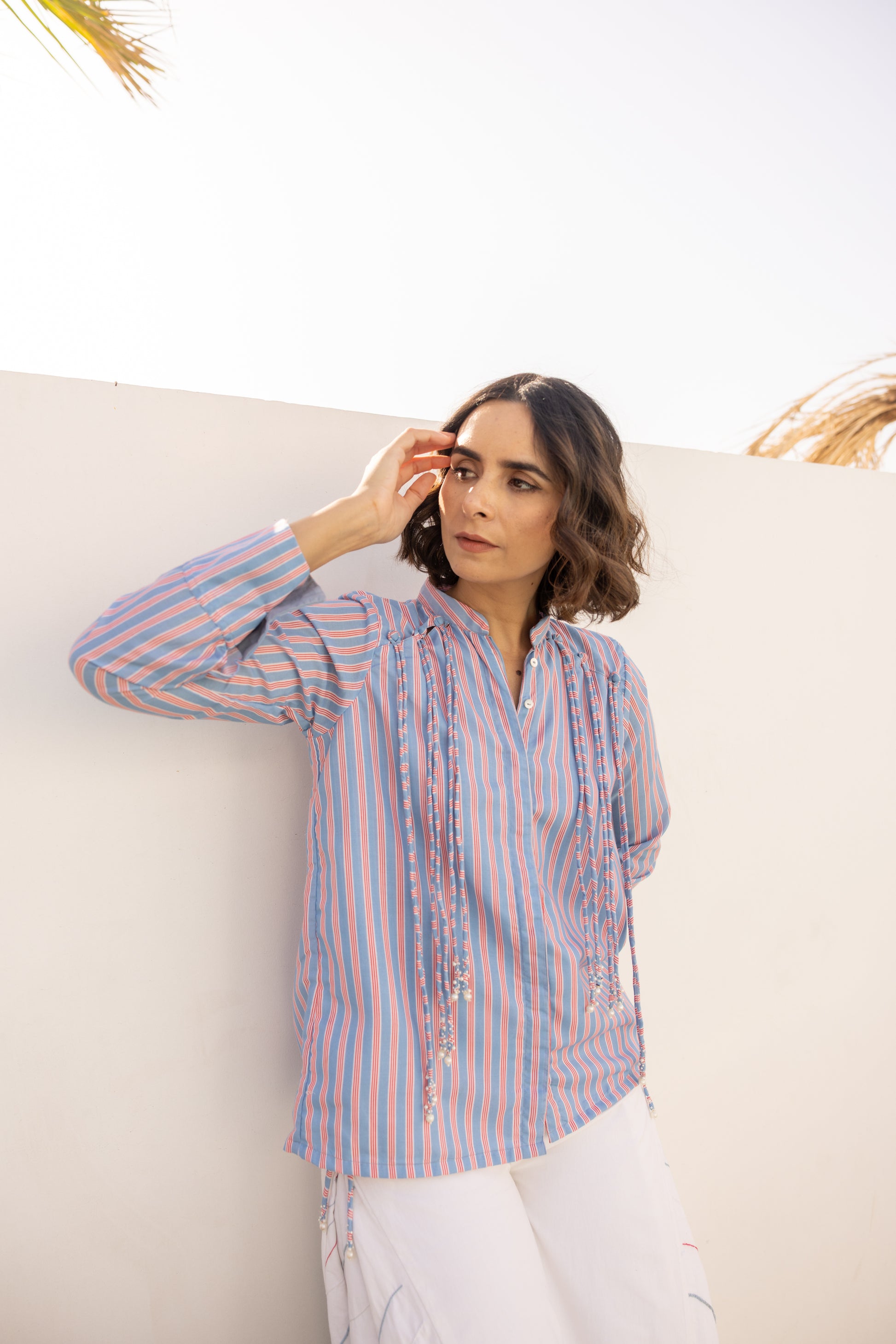 Celeste Top and Pants Set (Red and Blue Stripes)