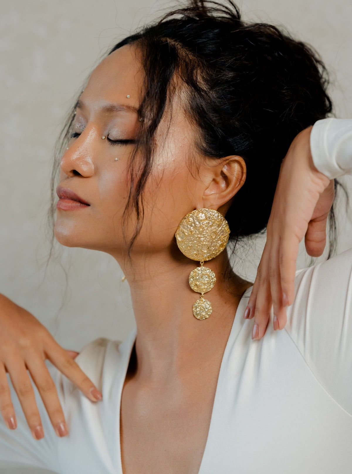 We love the power of the moon, the way it moves the tides and the way it shines so bright in the darkest hours of the night. Our Chaand danglers are a powerful pair to accessorize your look, they are bold, fierce and here to make a statement.