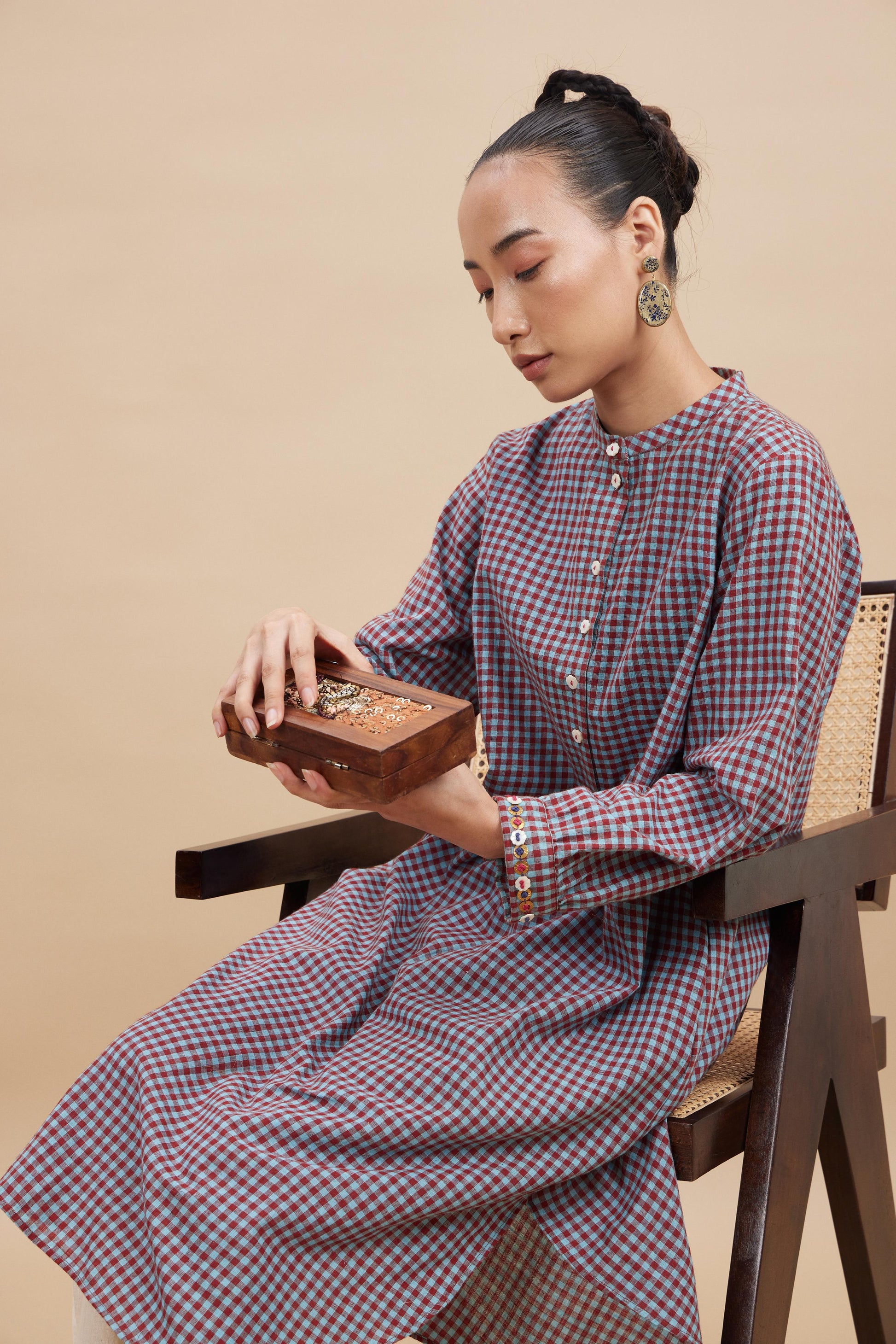 Hand loom Check Embroidered Co.ord Set With Hand loom Pants