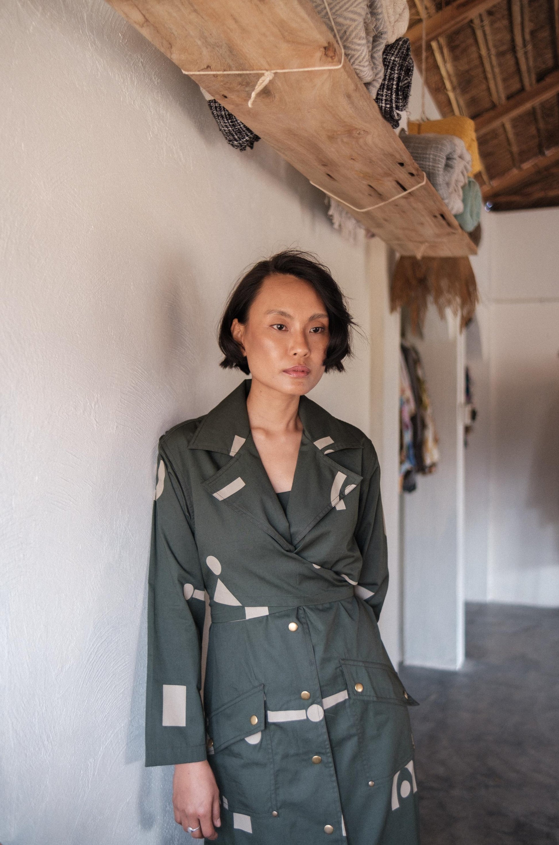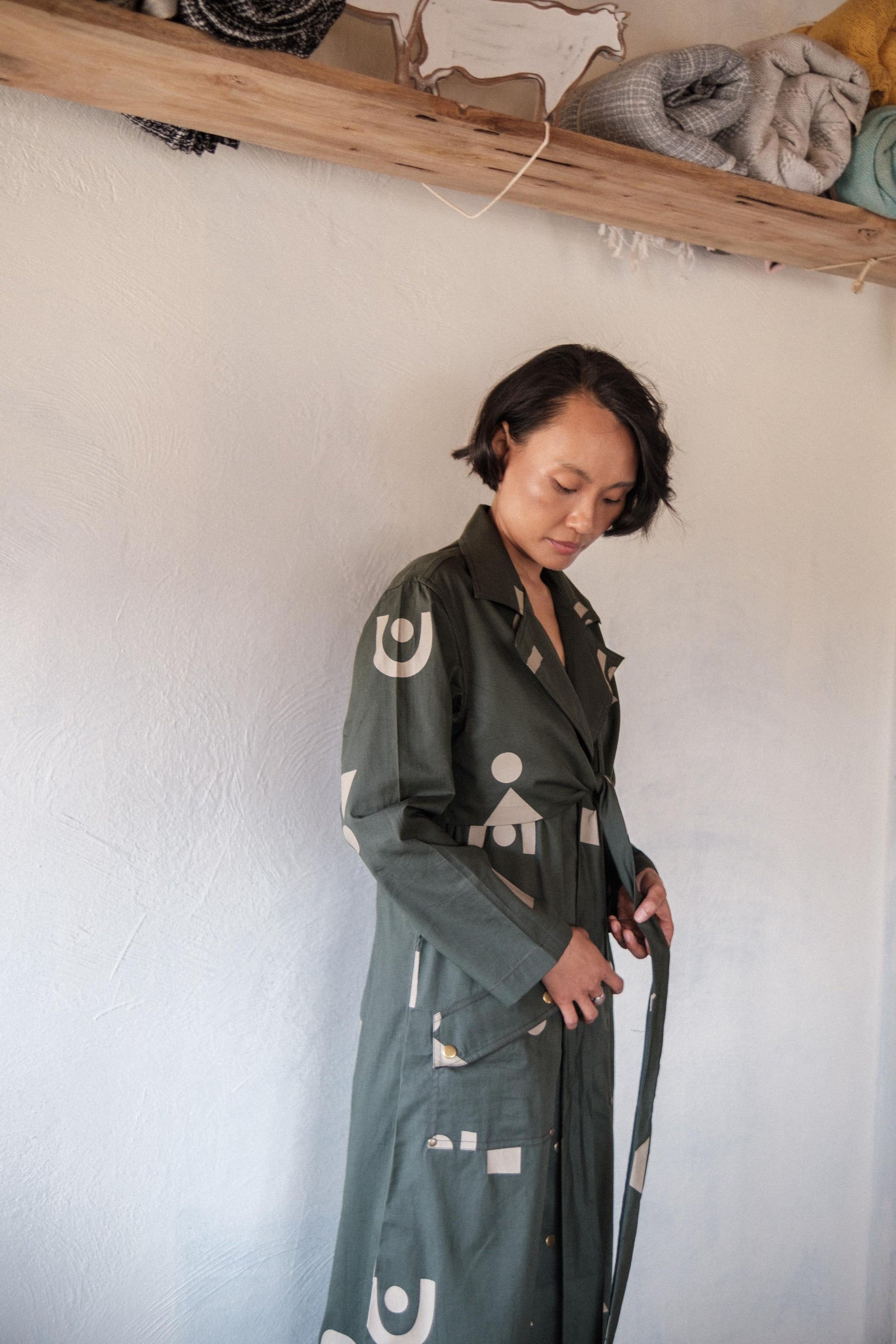 Copenhagen Trench Green Triangle Printed