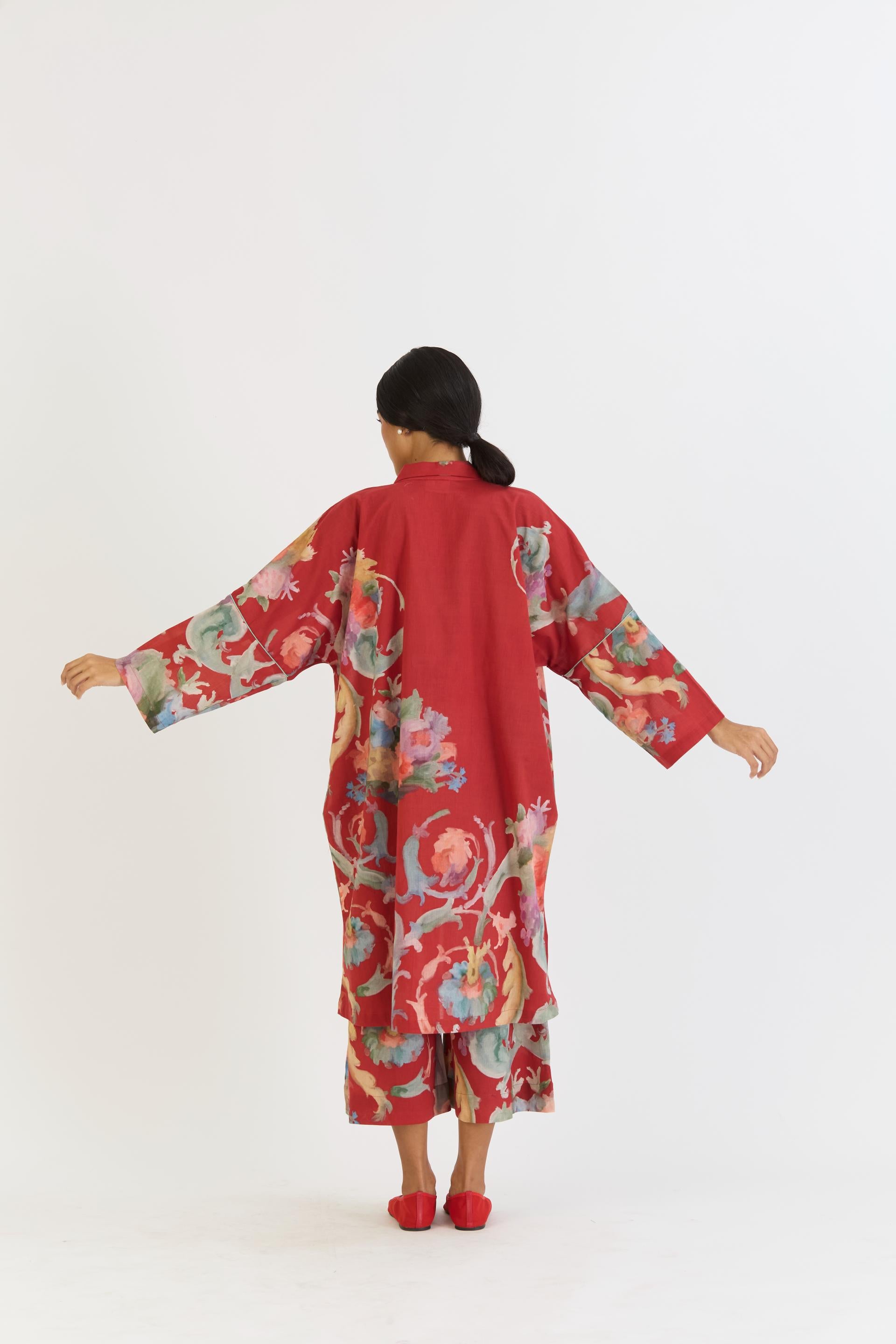 Cranberry Cotton Kaftan Set