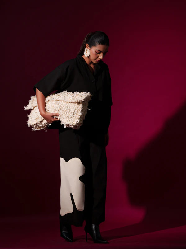 Relaxed trousers made in cotton features and elasticated waistband and side pockets along with hand sewn appliqué