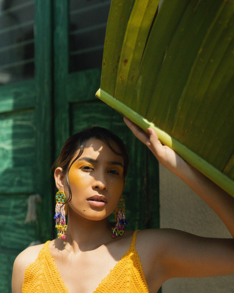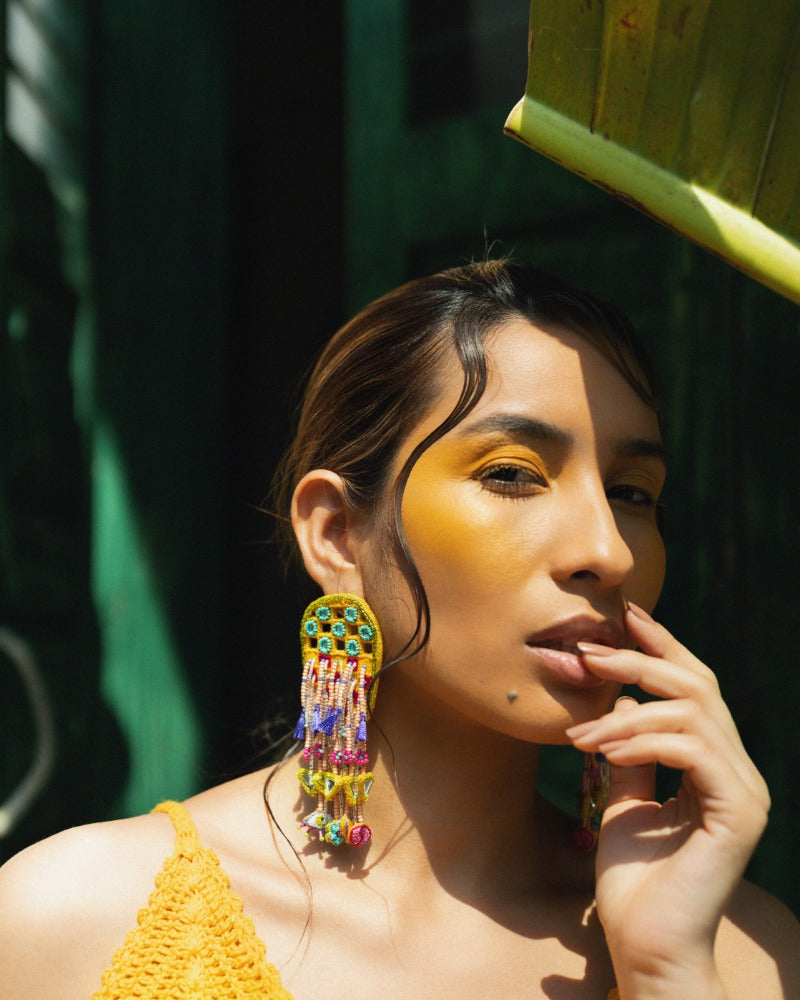This summer we bring to you some intricately and uniquely handcrafted earrings which can make heads turn. The earrings have beautiful checks of mirror and cutwork with beads detailing in embroidery and tiny motifs hanging which gives it a quirky look. Earrings are light weight and easy to carry. Provided with a stud at back.