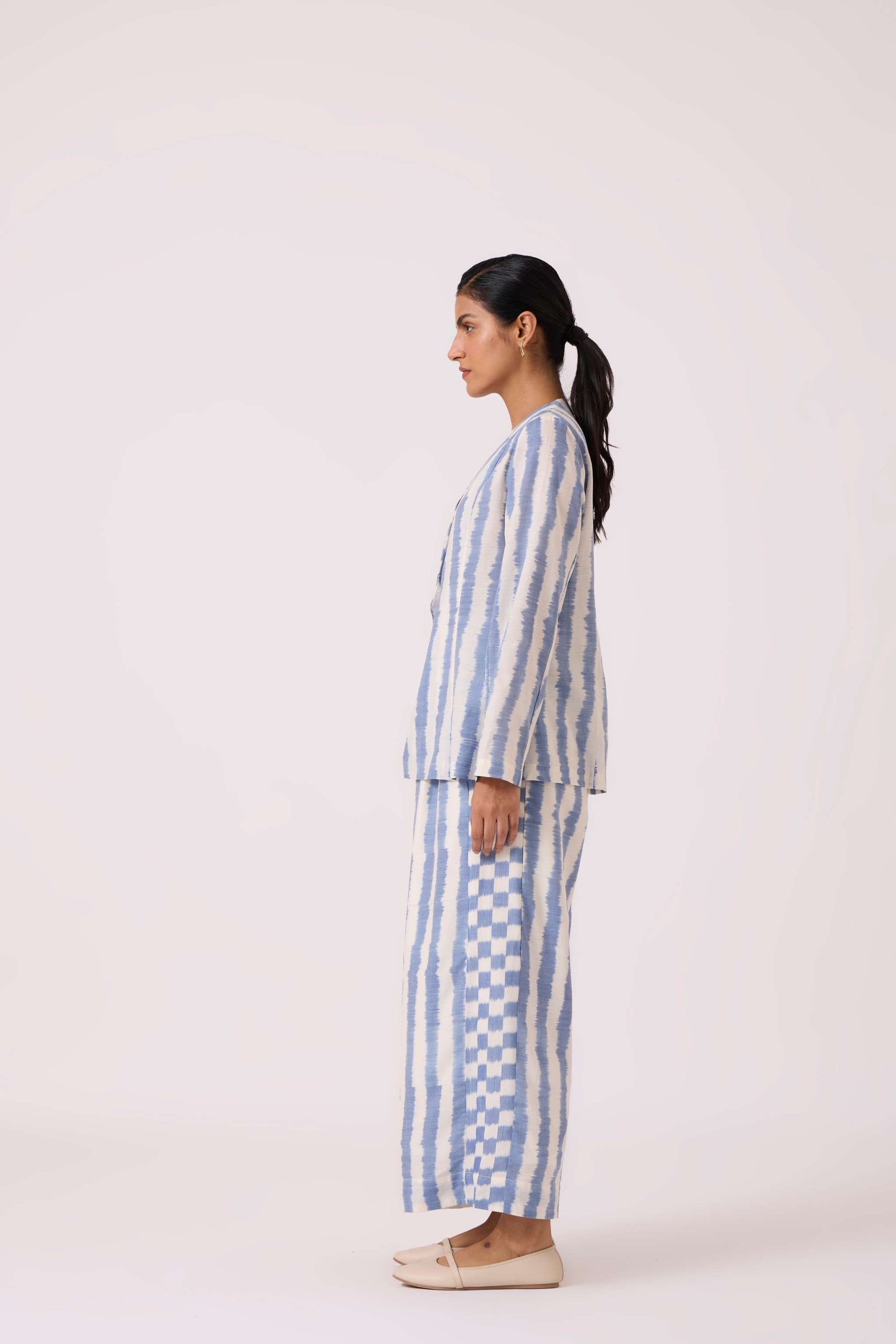 This Ikat design is developed in our studio and handwoven by artisans in Telangana. Slight irregularities are common and speak to the hand processes involved.