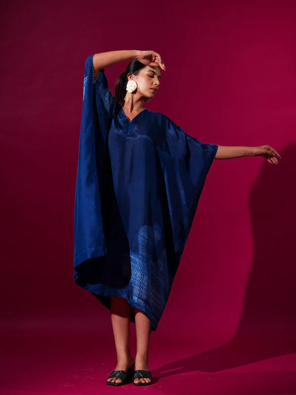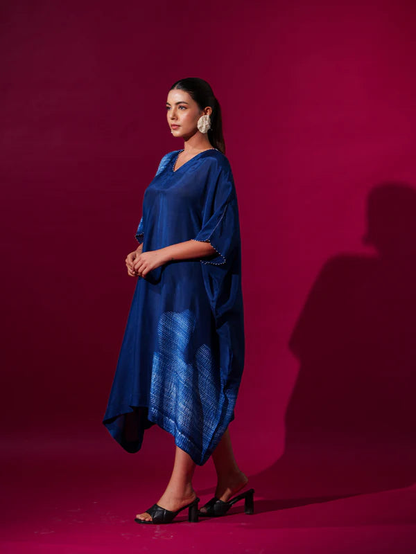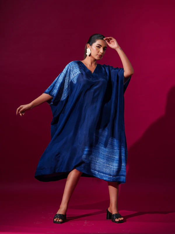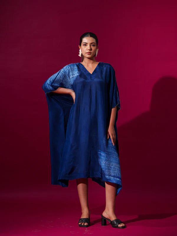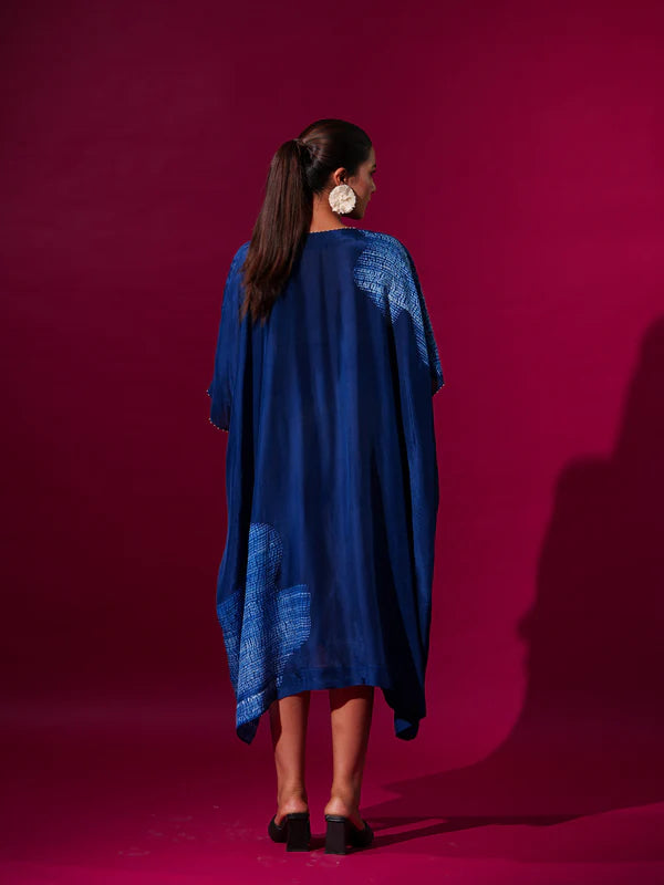 Kaftaan-esque tunic with shibori tie-dye motifs