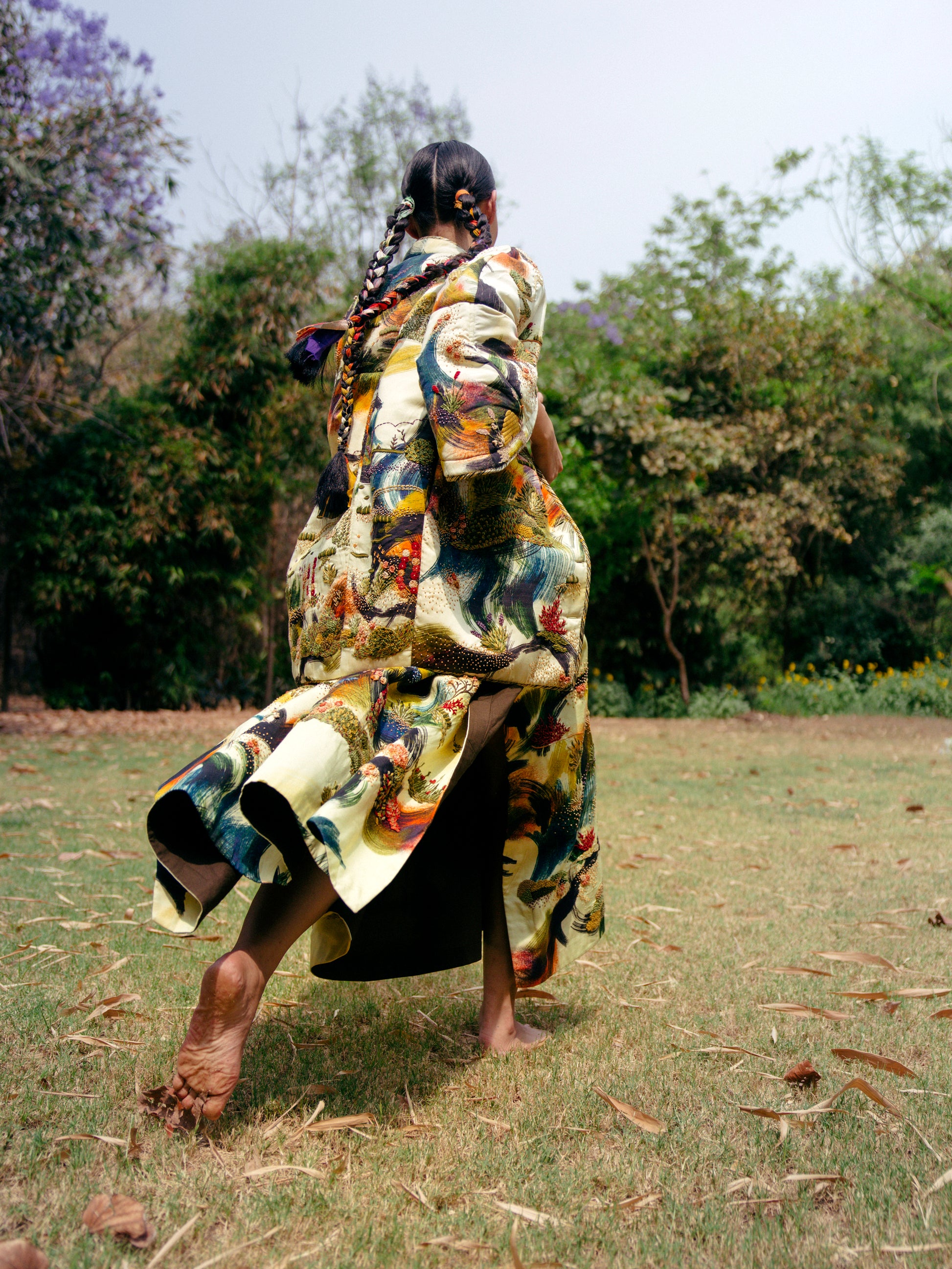 This dreamscape quilted skirt made in soft cotton fabric is a comfortable and structured silhouette. It is finished full hand embroidery creating a captivating 3d texture with proper finishing and stitching