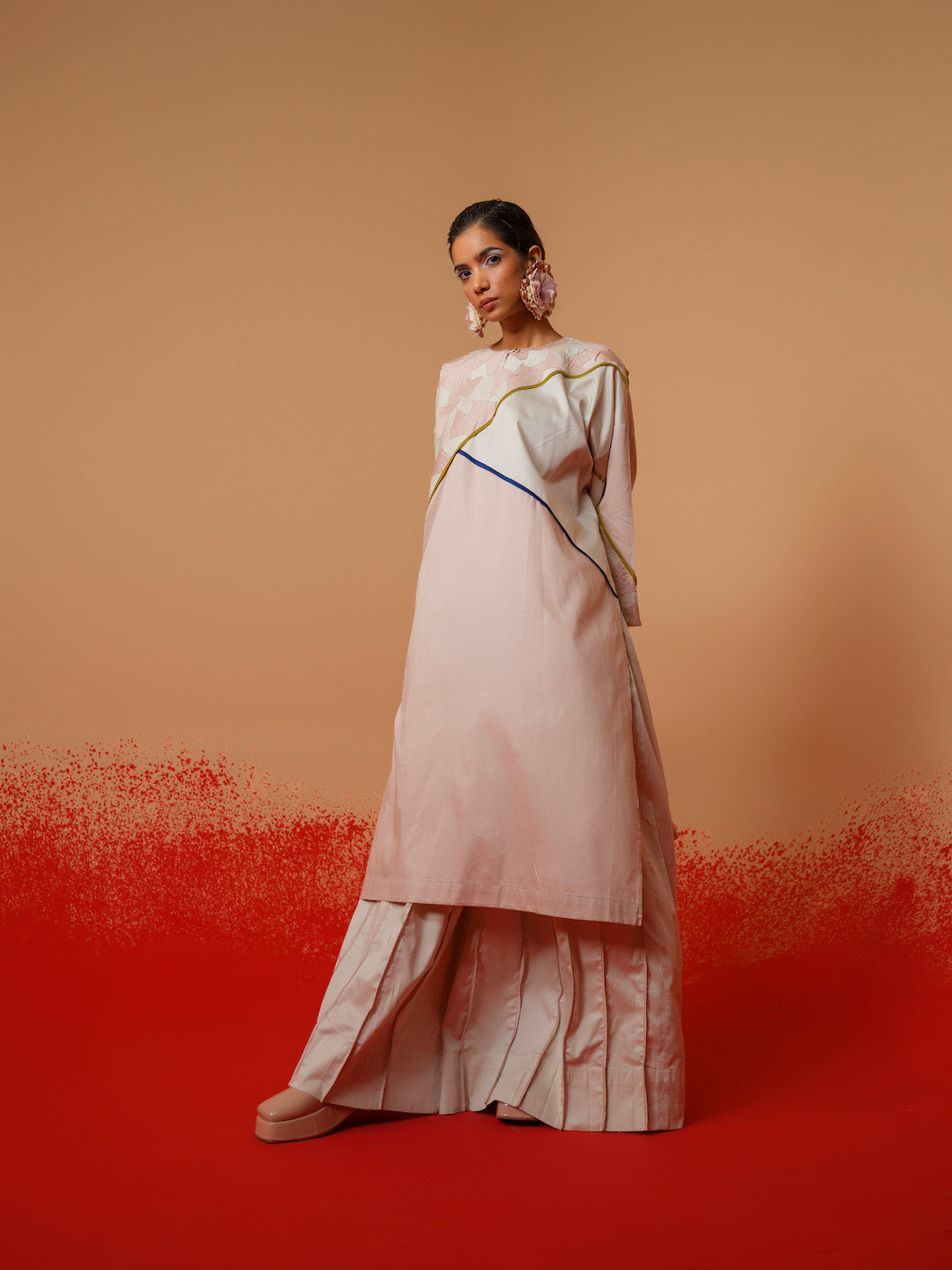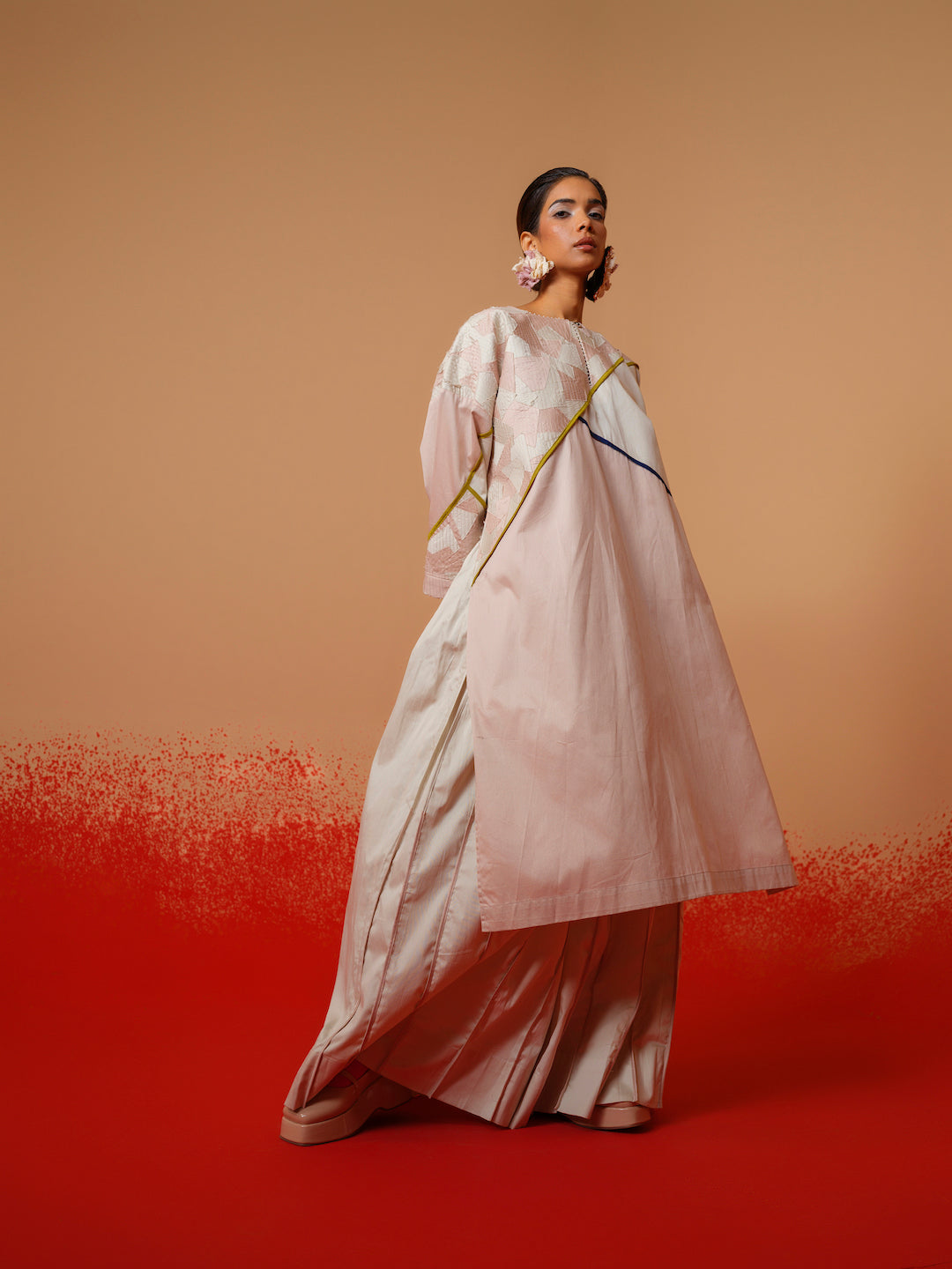 Fragments gathered, stories stitched. A one-size tunic crafted in our signature crushed silk, detailed with upcycled chindi patchwork and vibrant contrast bindings. Easy, effortless, and layered with quiet memories.