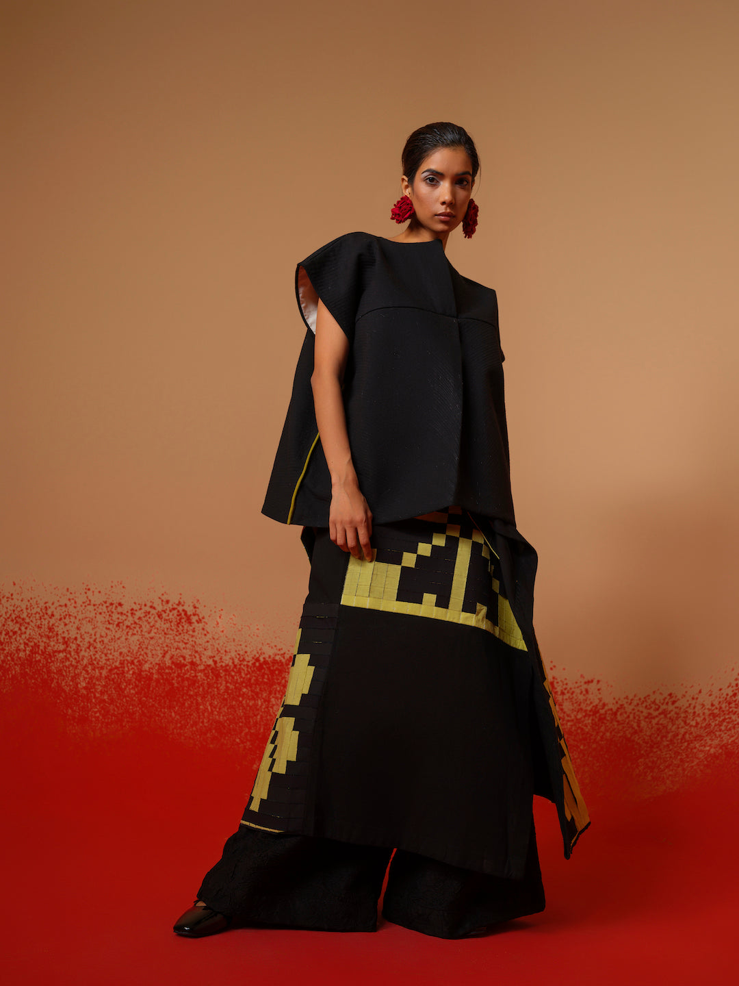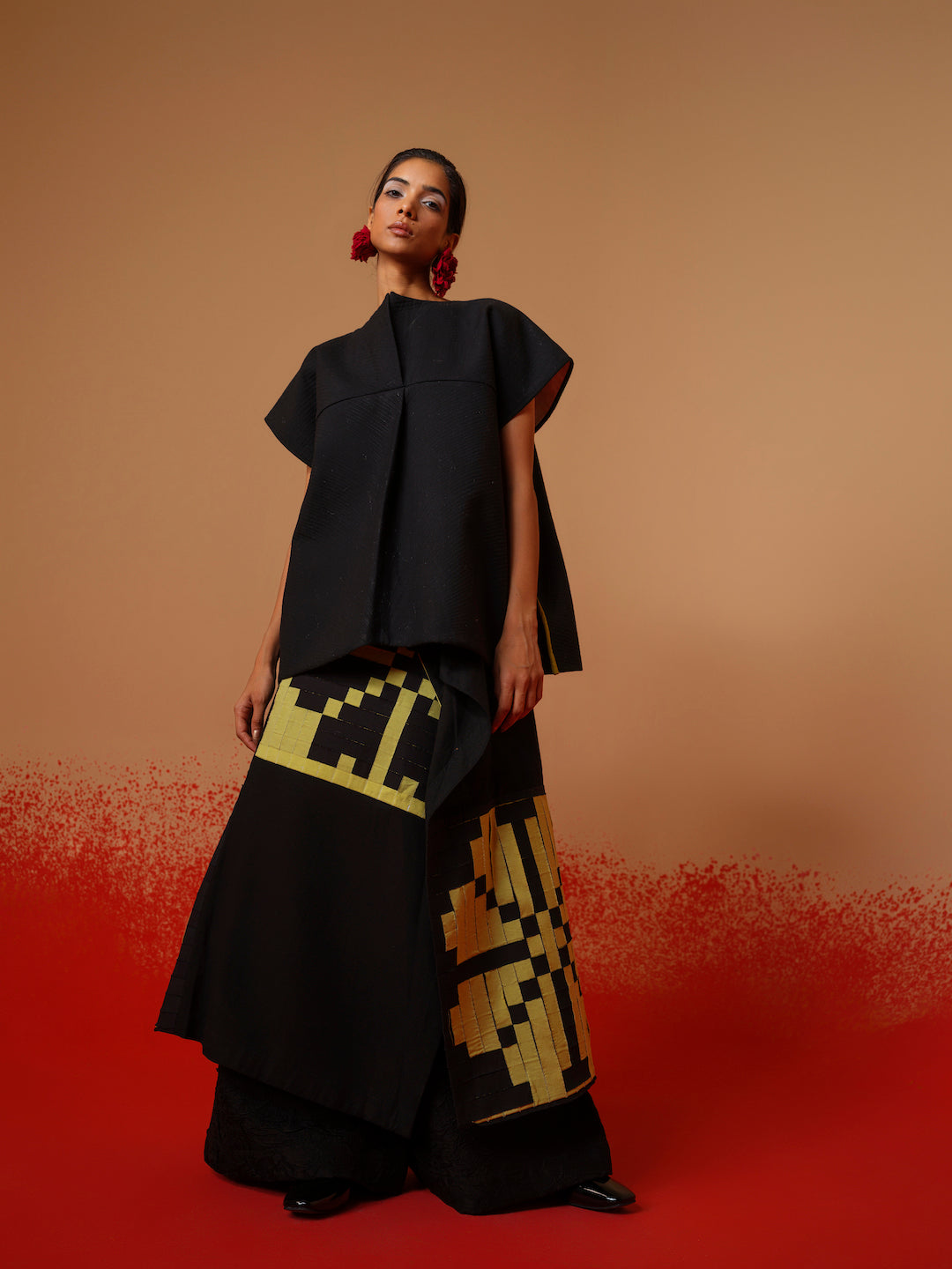 Soft structure, hand-held craft. A one-size, sharply structured top, hand-quilted in-house using artisanal techniques. Made in pure cotton — designed like a modern armour, stitched with patience, made to last.