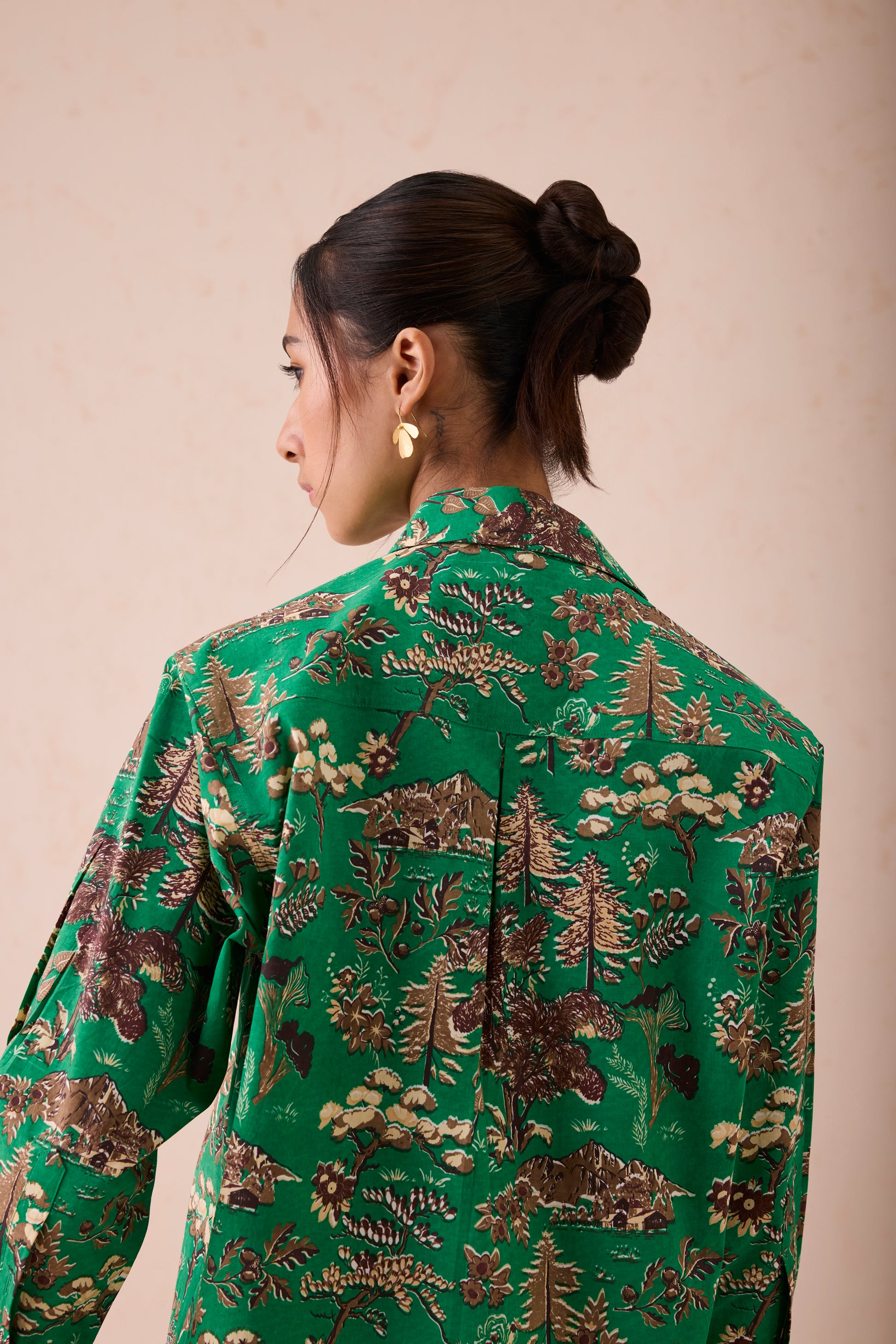 Regular fit, collared, sleeveless shirt that buttons at the front crafted in azo-free dyed, handspun and handwoven organic cotton fabric, machine and hand embroidered with motifs inspired by flower fields.