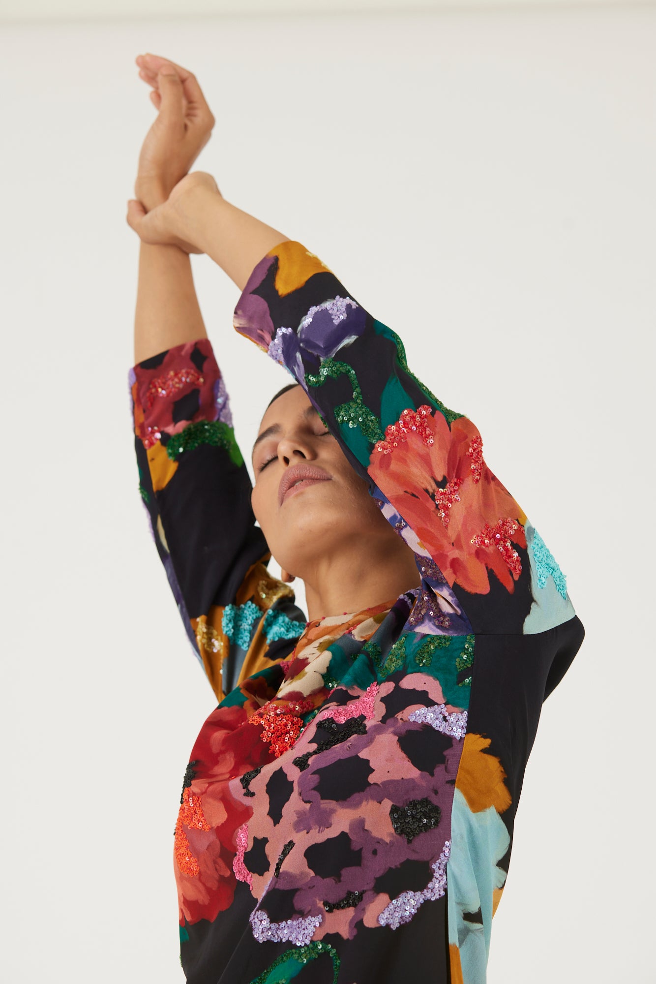 The set features hand embroiderd sequin work in front and back of the kurta.