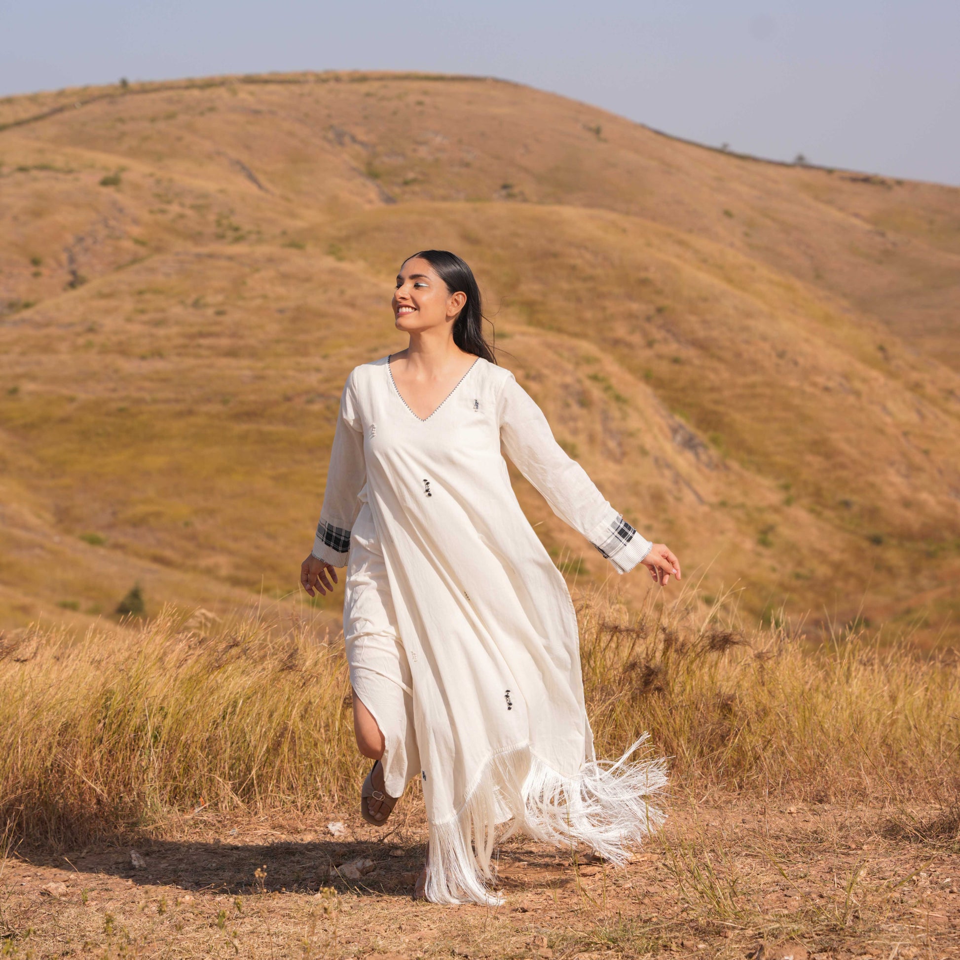 Step into sophistication with our A-line Dress, designed to enchant with its symmetrical silhouette and timeless charm. The dress features a bow collar adorned with intricate knots detail, adding a touch of elegance and refinement.