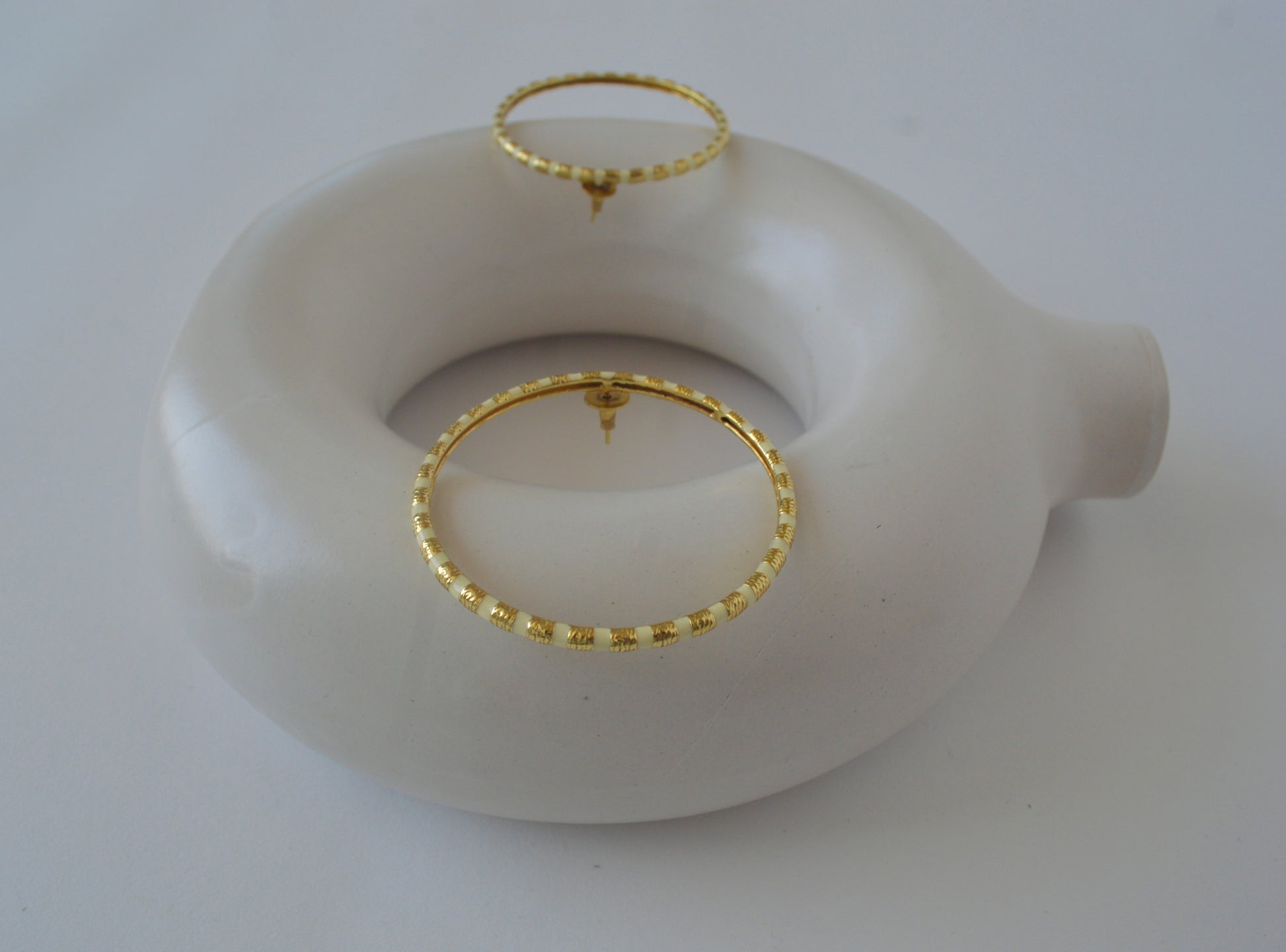 An enigmatic round ear stud are quintessential in every wardrobe. The White enamel detailing merge to form this simple yet classic design.