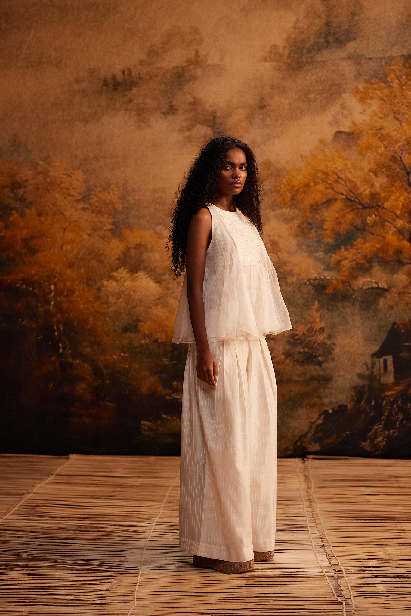 A vision in silk organza, our Hana Organza Top is designed with screen printed cotton panels and a delicately crafted jaal yoke, blooming like a flower. Dramatic gathers cascade down the front, adding movement and flair, while its versatility makes it suitable for both elegant evenings and casual outings. An ethereal yet wearable masterpiece.