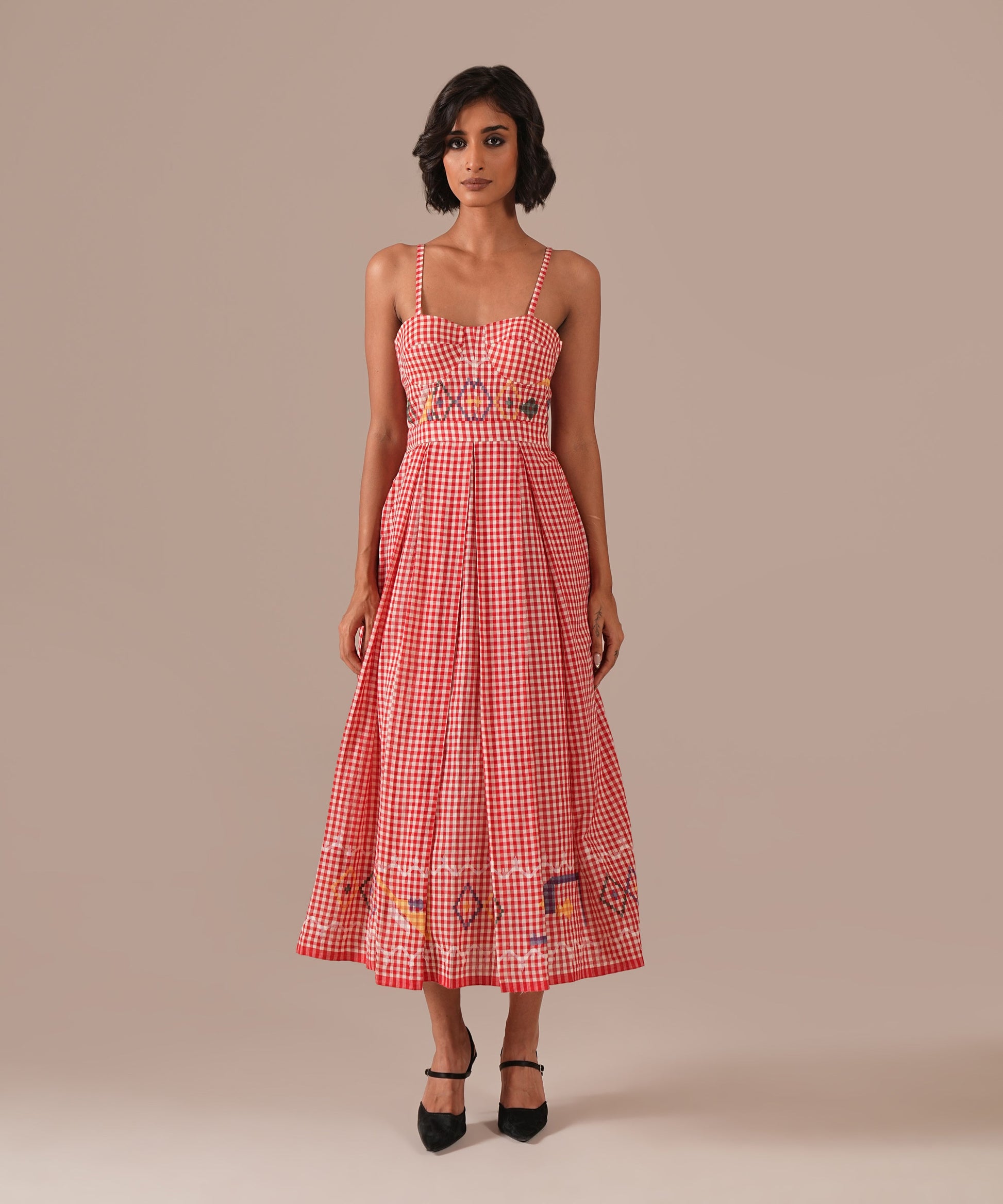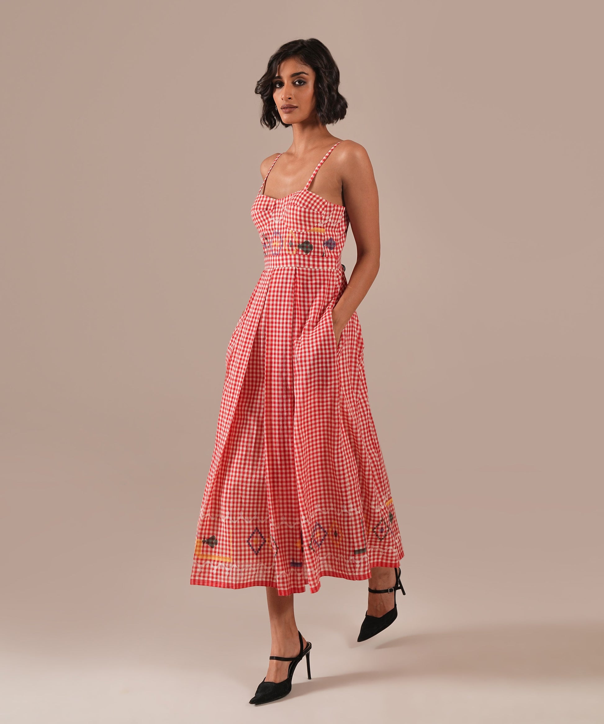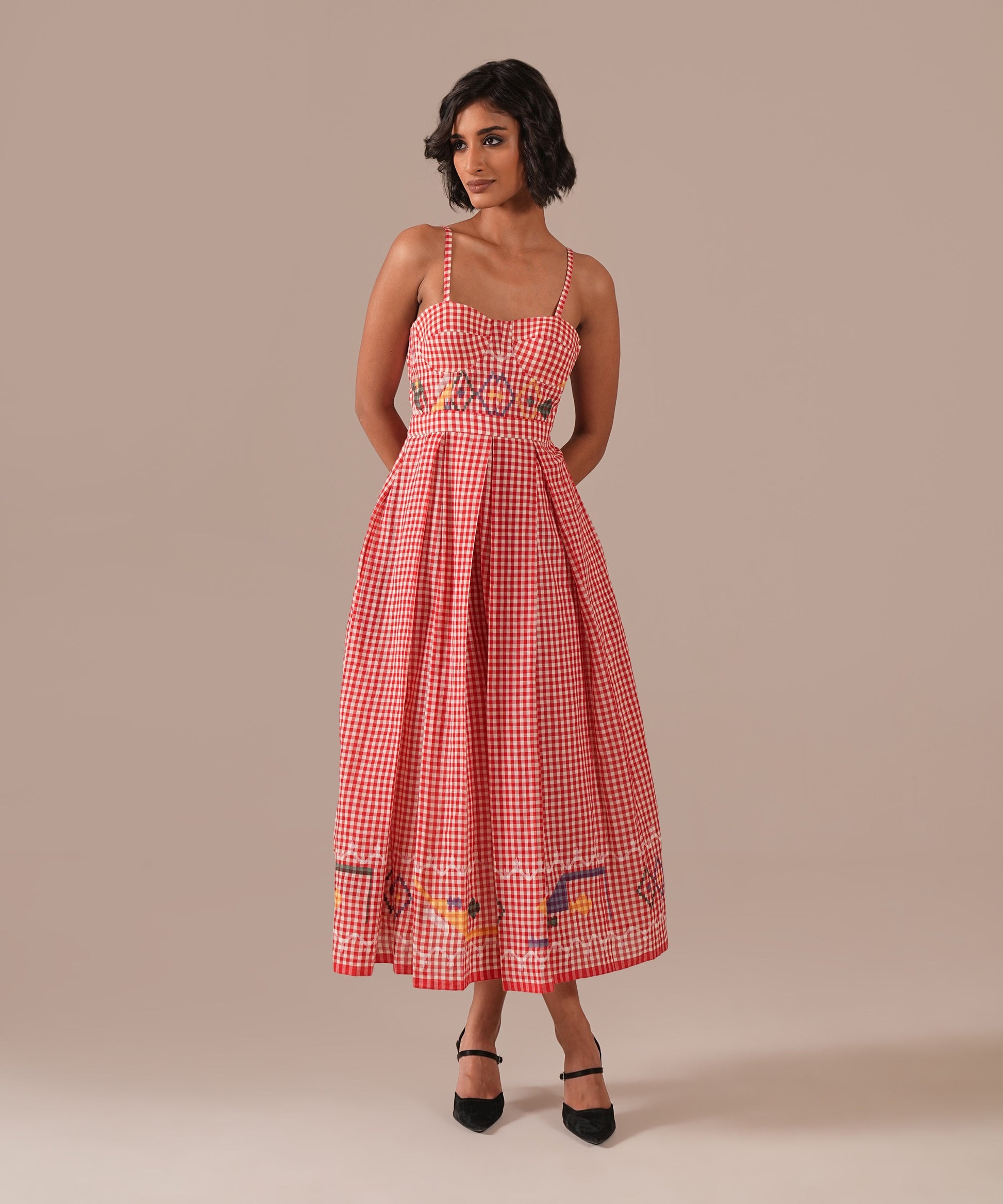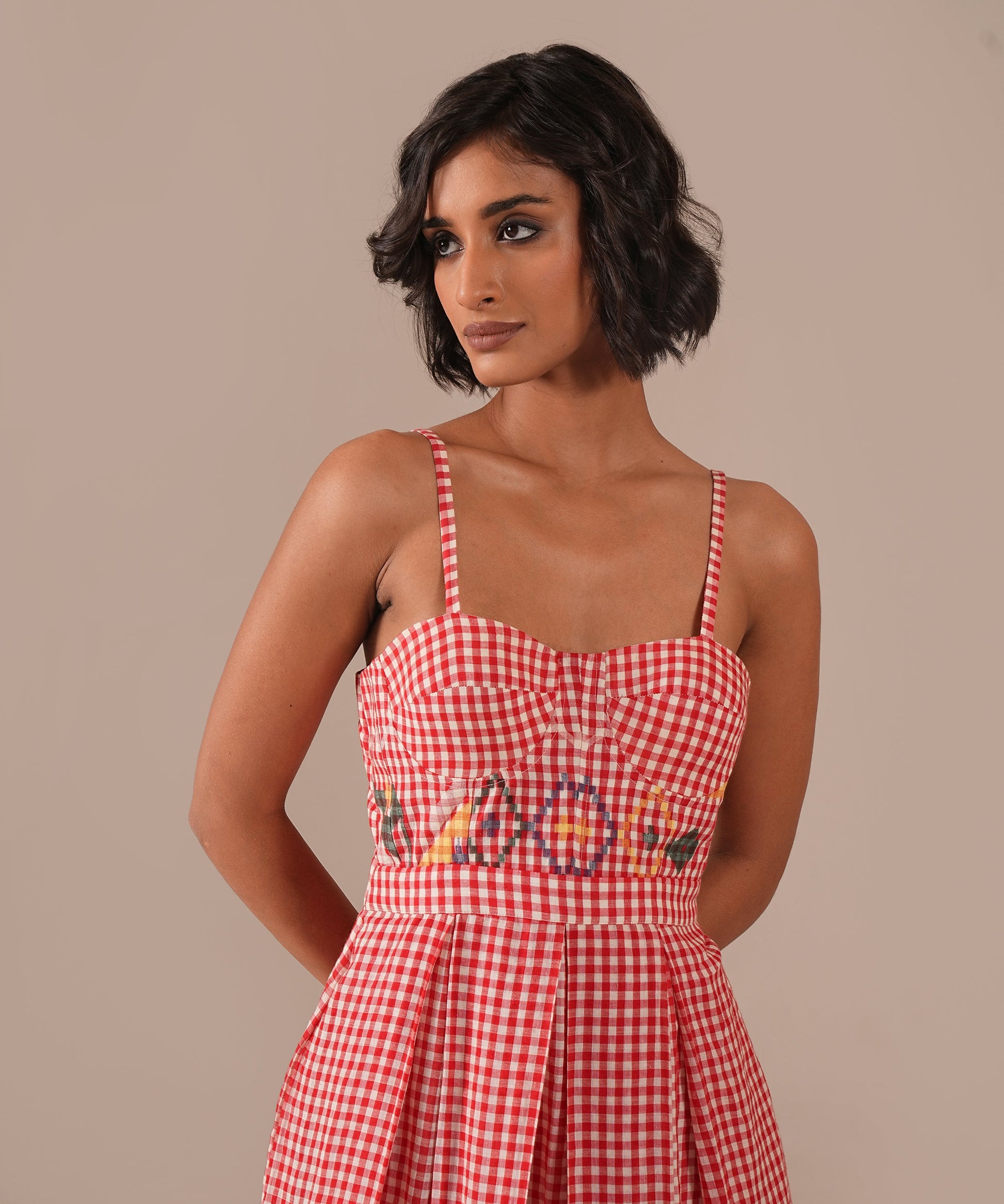 Introducing our Jamdani Bralette Dress, meticulously handwoven by skilled artisans. Designed with elegant box pleats and functional side pockets, it features adjustable straps for a tailored fit. A timeless piece that effortlessly blends traditional craftsmanship with contemporary style.