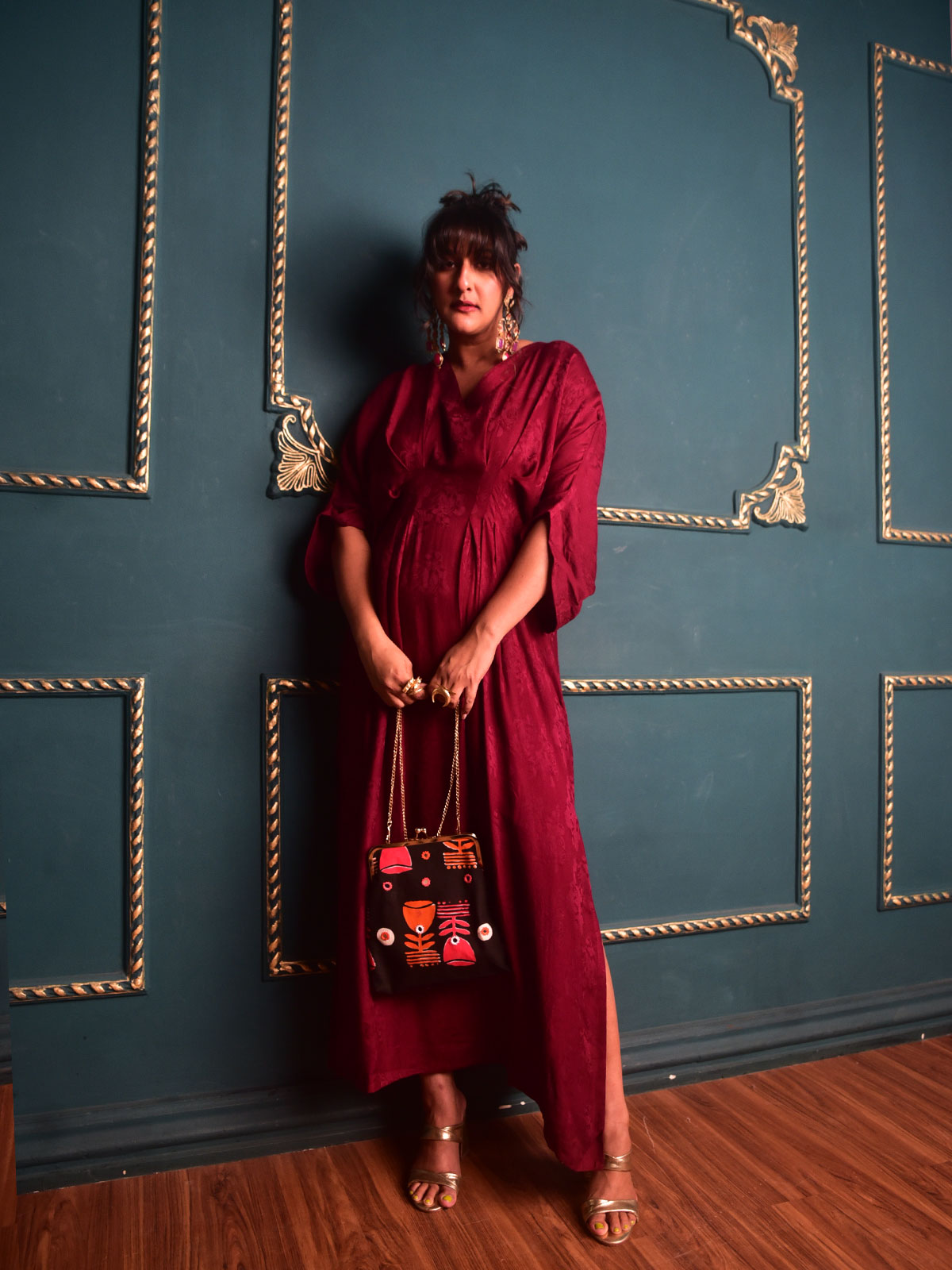 Make a lasting impression in our maroon evening dress, perfect for an elegant night out.