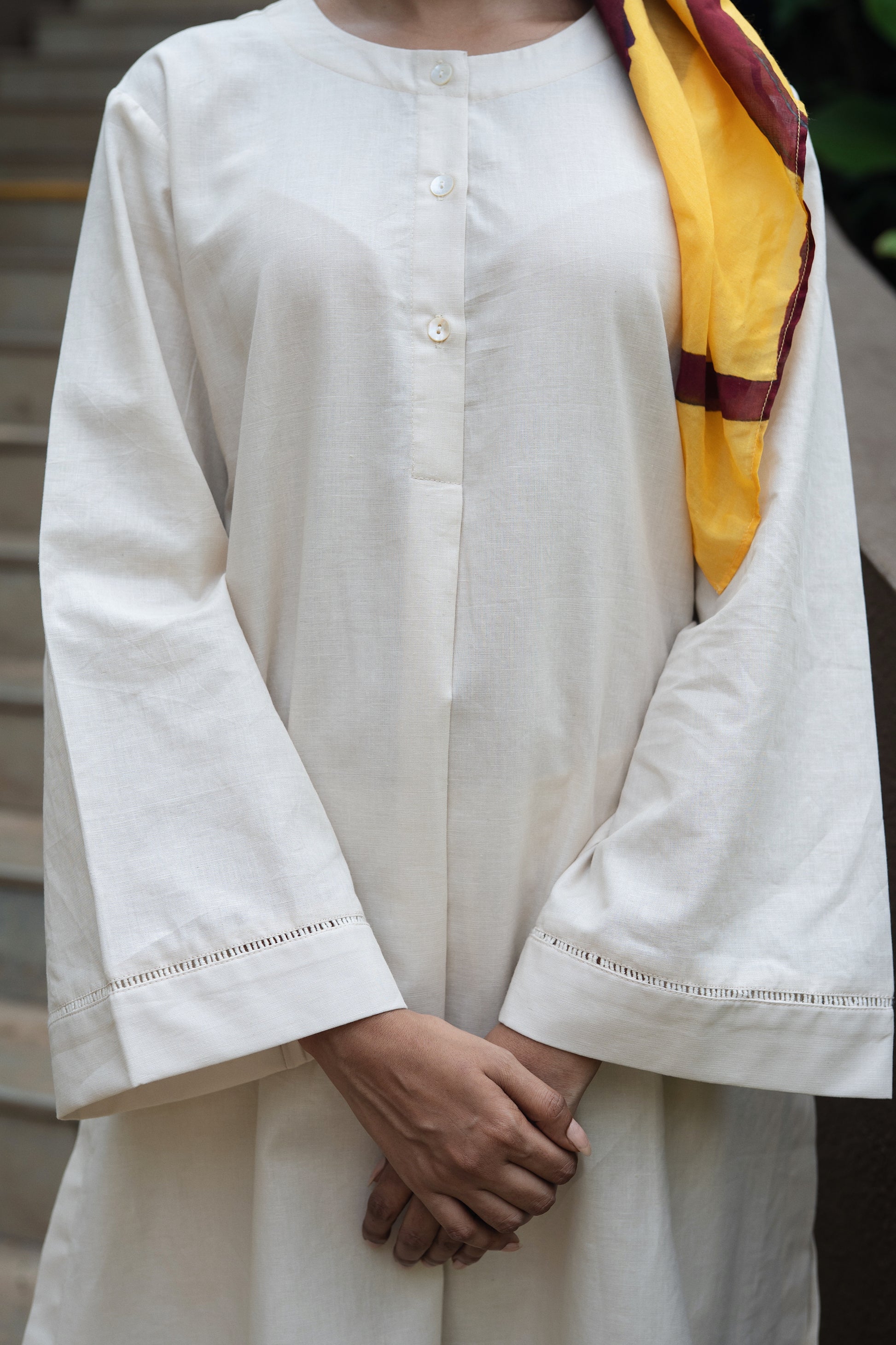 The Iris kurta set is made from our yarn dyed linen cotton fabrication . The tunic Is anti fit pheran style kurta with pakiza inspired pants.