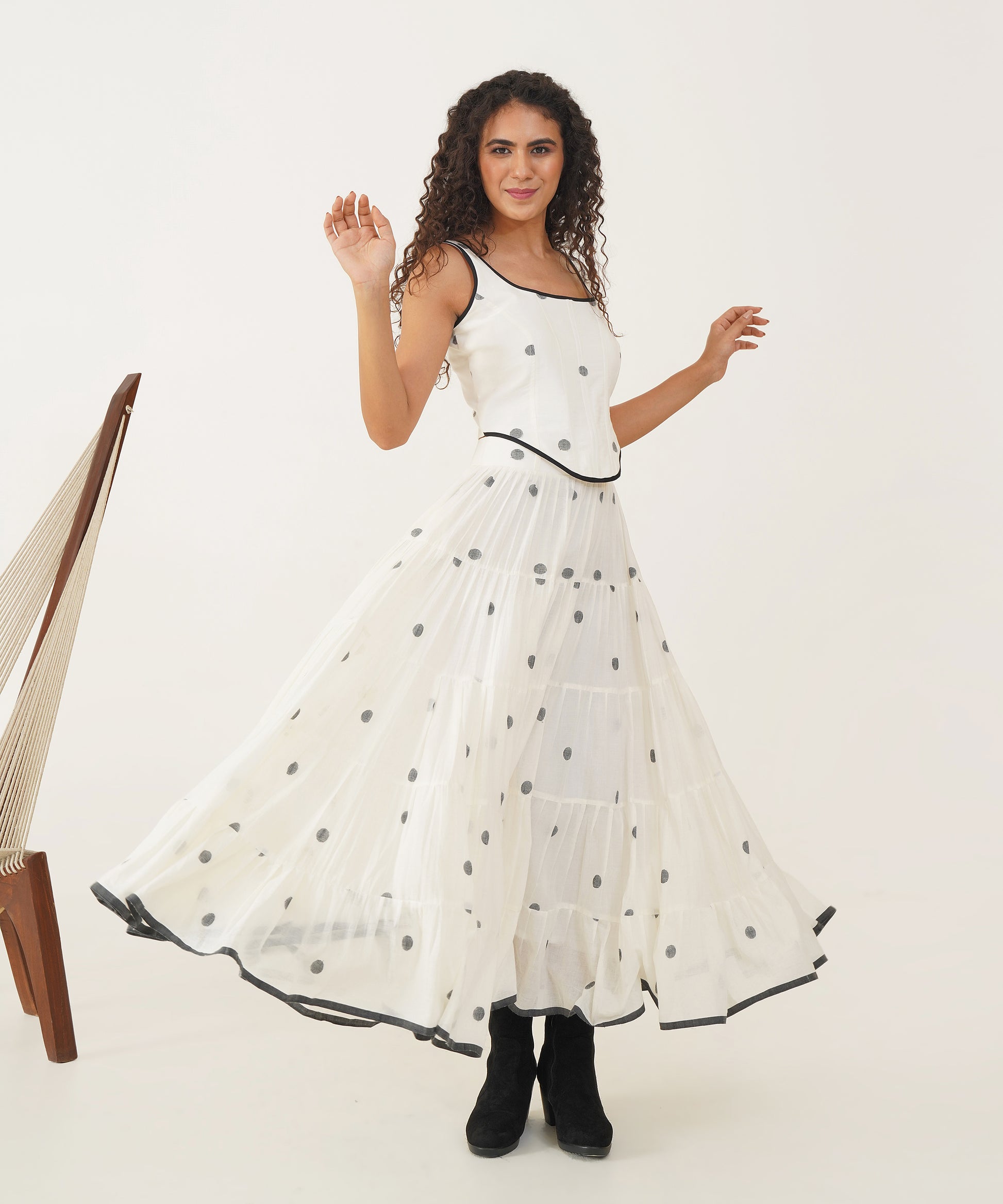 Make a bold statement with our exquisite skirt, showcasing a voluminous tiered silhouette that adds dramatic flair to any outfit. The side zipper fastening ensures a streamlined fit, while the convenient side pockets offer practicality and ease. This skirt seamlessly combines eye-catching design with functional details, making it a standout piece for any occasion.