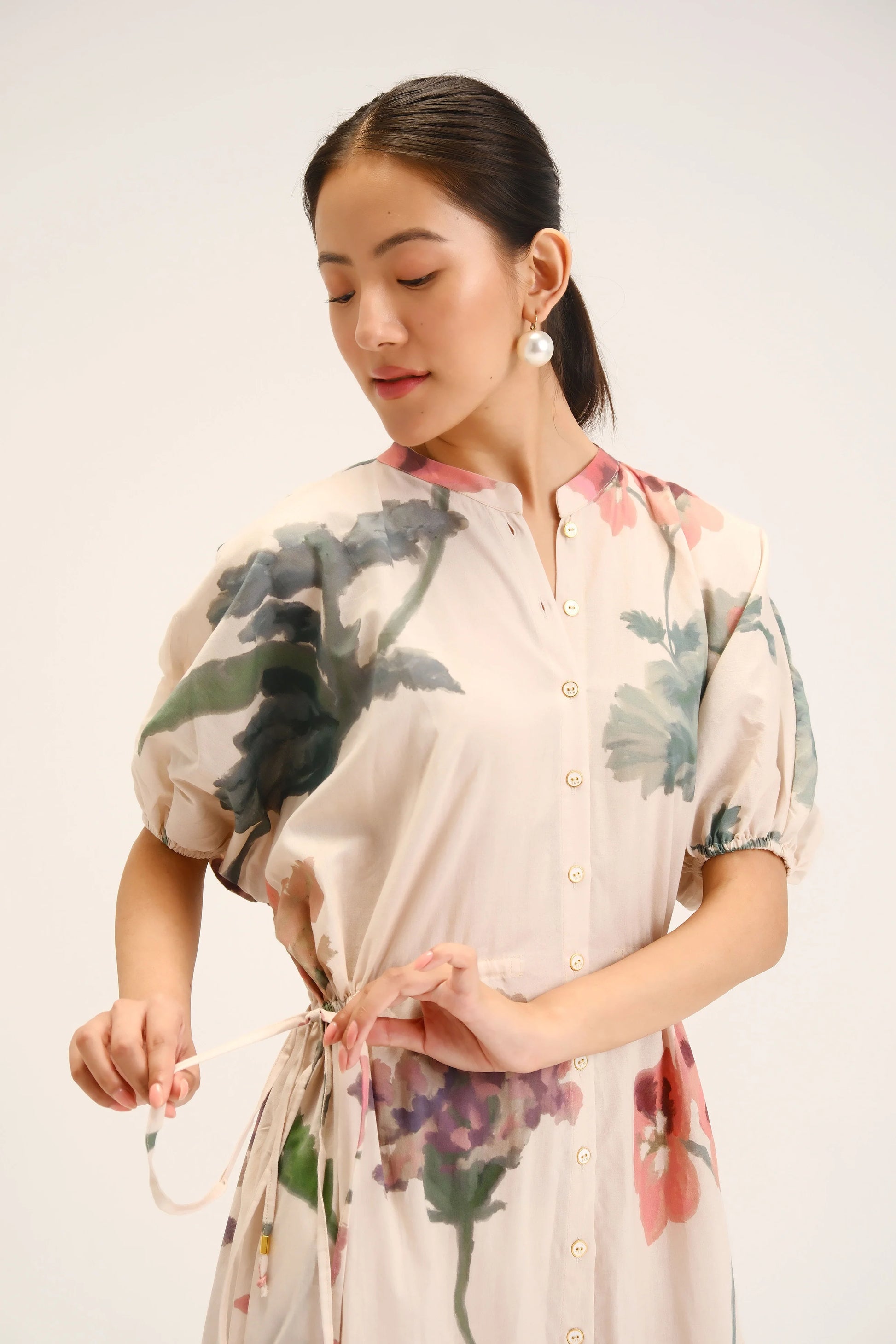 Immerse yourself in understated elegance with our Floral Watercolour Co-ord Set. The set features a soothing ivory base adorned with delicate, hand-painted floral motifs in soft hues of pink, green, and blue. The print mimics the effect of watercolor brushstrokes, lending the outfit a dreamy, artistic appeal.