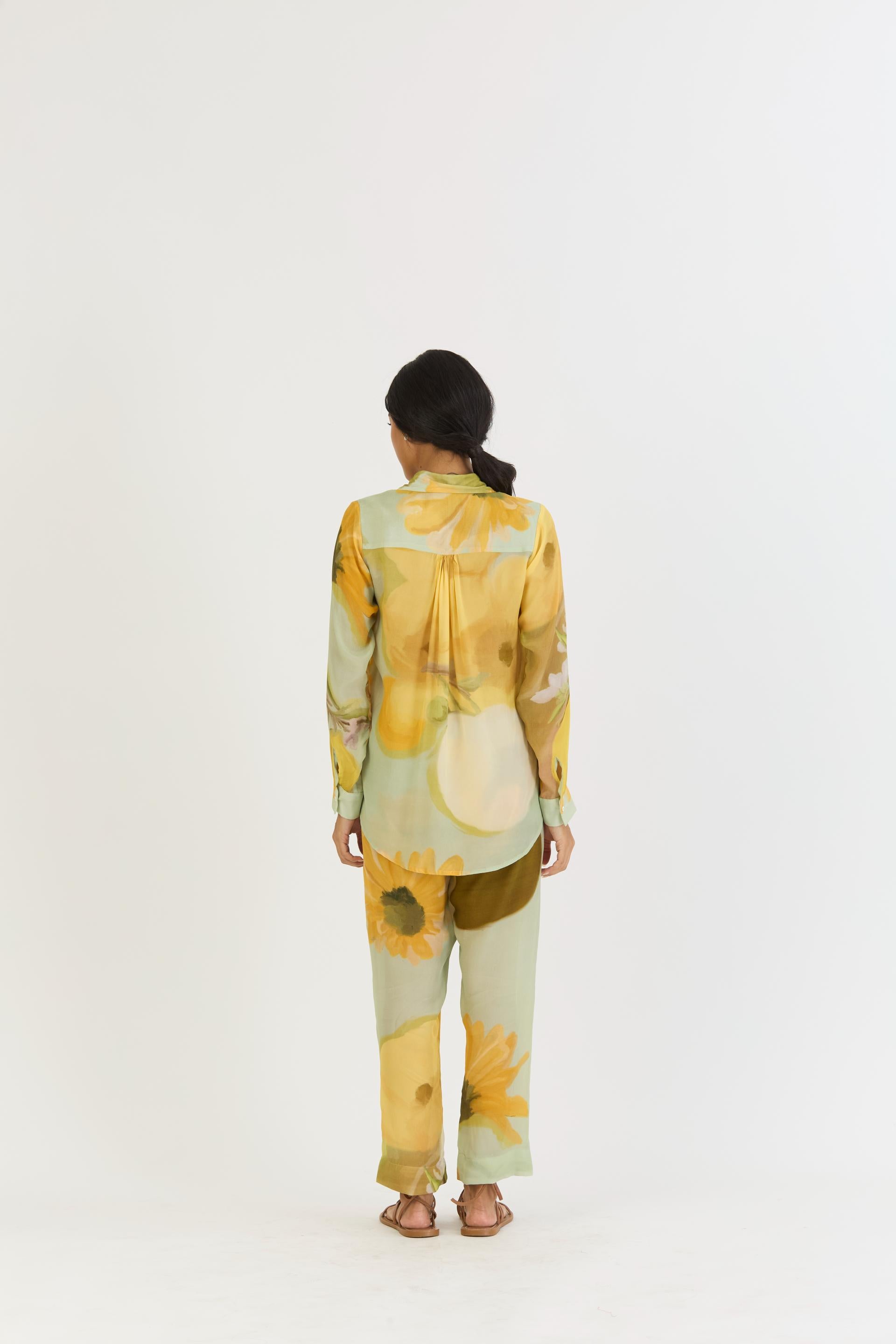 The loose-fitted shirt, meticulously crafted in breathable crepe, exudes a relaxed yet refined appeal.