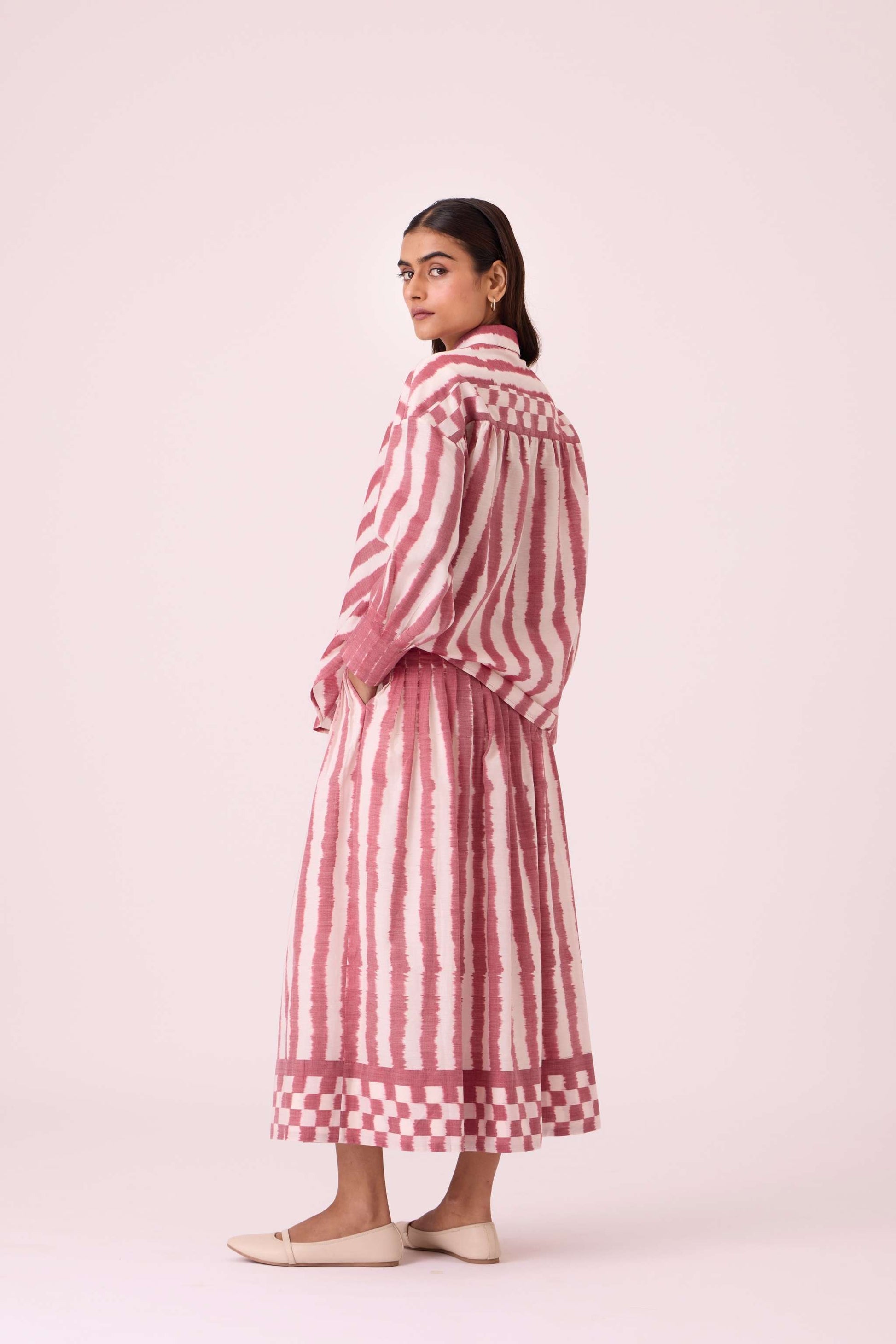 This Ikat design is developed in our studio and handwoven by artisans in Telangana. Slight irregularities are common and speak to the hand processes involved.