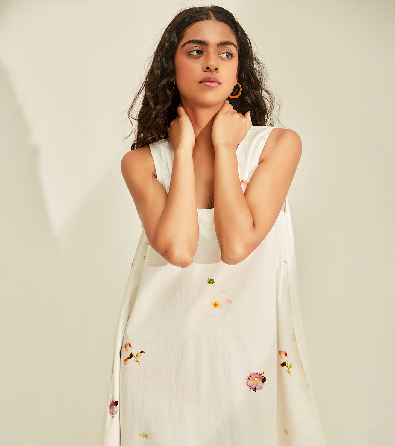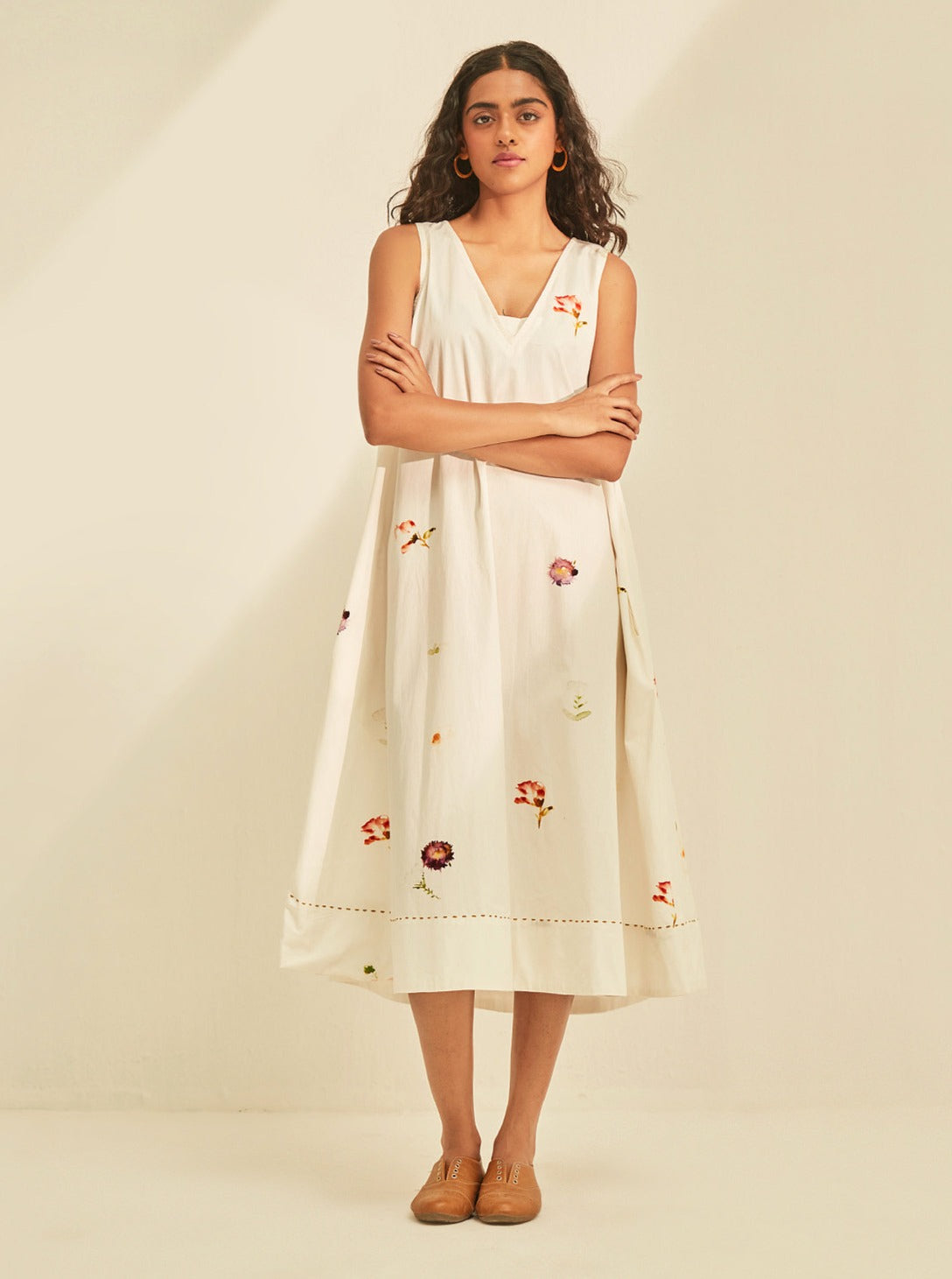 Experience the magic of this season in our airy white floral dress. crafted in poplin. Handcrafted in India. Side seam pockets.