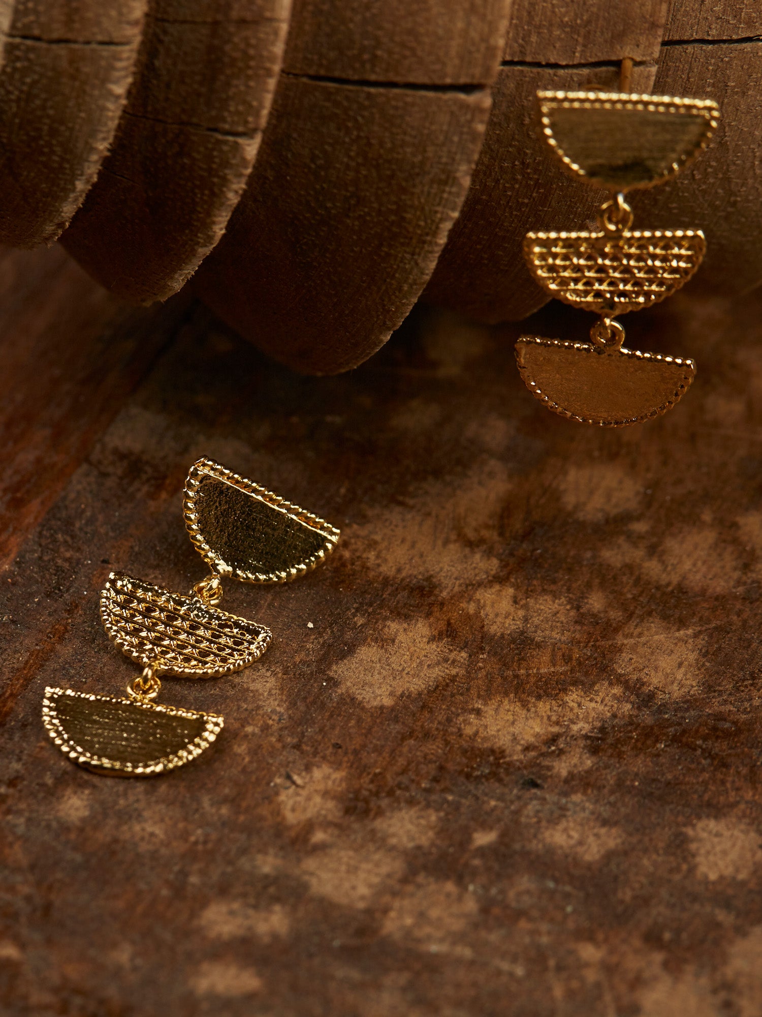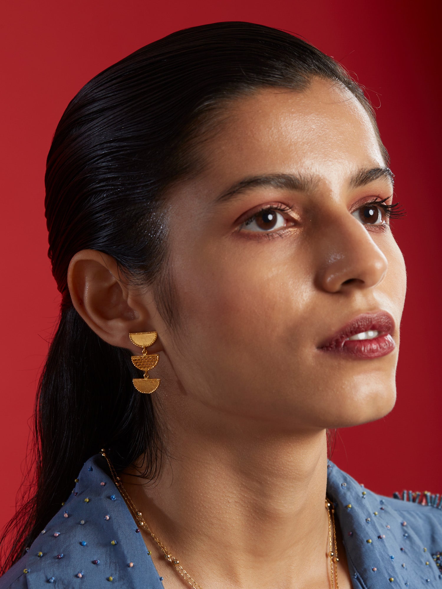 A cascade of alternate filigree and textured metal half-moons, the 'Many moons' earrings dance on the ears. A pinch of drama to the everyday.